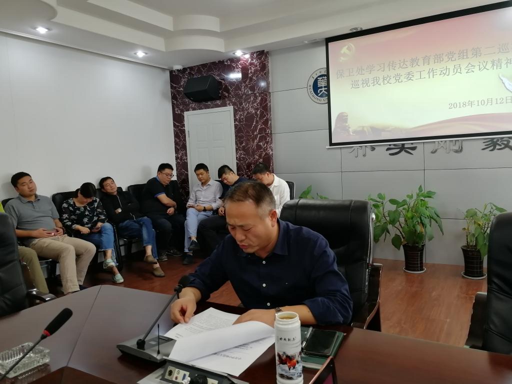 10月12日下午14:30在处会议室,保卫处召开全处职工大会学习传达教育部党组第二巡视组巡视我校党委工作动员会议精神。会议由保卫处处长吴德能主持。