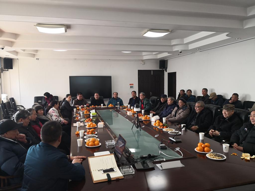 团拜会开始前,退休老同志在会议室欢聚一堂,相互问候,畅谈时事,热聊自己的老年生活。