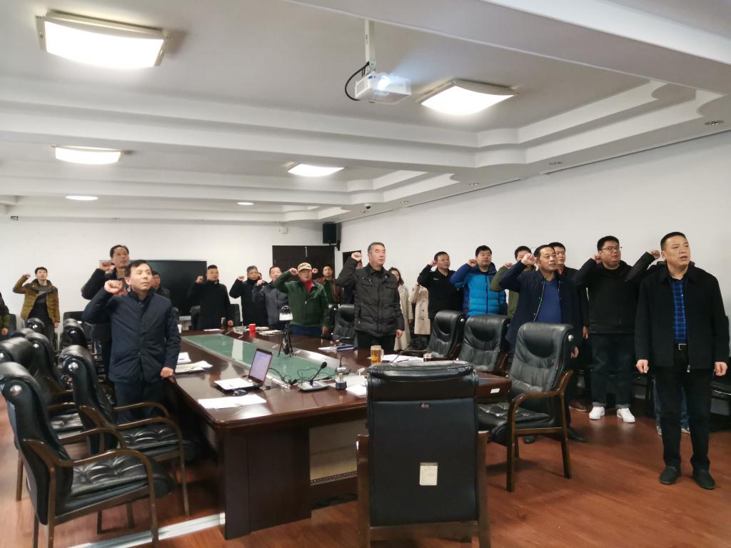 首先,王东爽同志带领全体党员重温入党誓词,组织委员李丹同志带领全体党员集体诵读《党章》第六章。