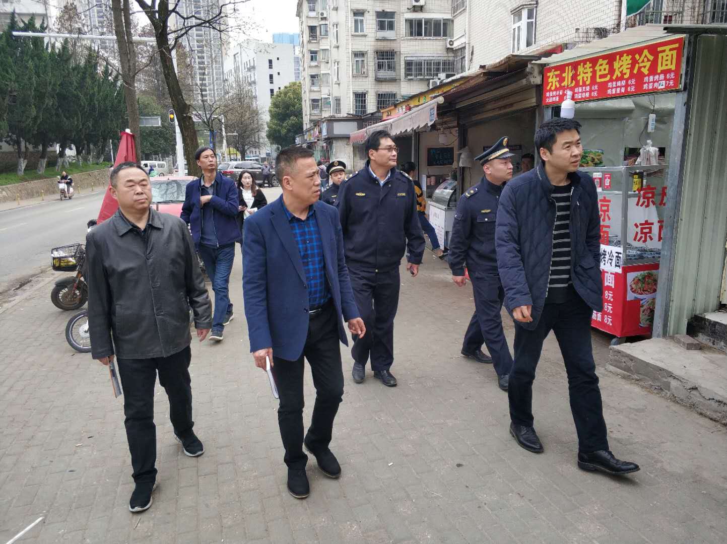 3月26日下午,保卫处处长王东爽、洪山区珞南街党工委书记纪宏杰、珞南街纪工委书记何勇、珞南街办事处主任陈磊、珞南街道办社区城管中队队长杜华斌以及后勤保障部社区主任张智等同志一同来到学校南门,就南门内玉兰苑商铺的经营秩序情况进行现场调研,并对学校南门及周边环境存在的违规经营问题及安全隐患提出整改措施。随后,保卫处工作人员协助街道办城管中队连夜进行整改。