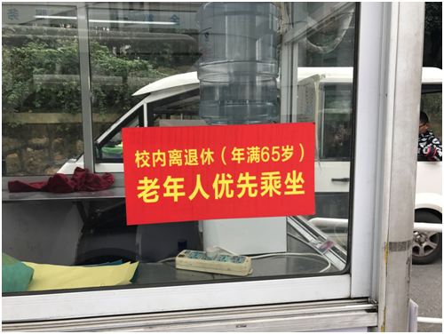 十载岁月,校车服务队已成为离退休教职工的亲密伙伴。在2018年间,车队为他们提供的免费服务已达12.43万人次。司机师傅们尤其敬重那些为华师的建设发展奉献了毕生精力的老教师们,每每遇见必耐心引导,入后必要还会进行搀扶。为了使老年人的出行更为方便,65岁以上的离退休职工们可以优先上车。校车服务队也为华师尊老敬老的优良传统建设做出贡献。