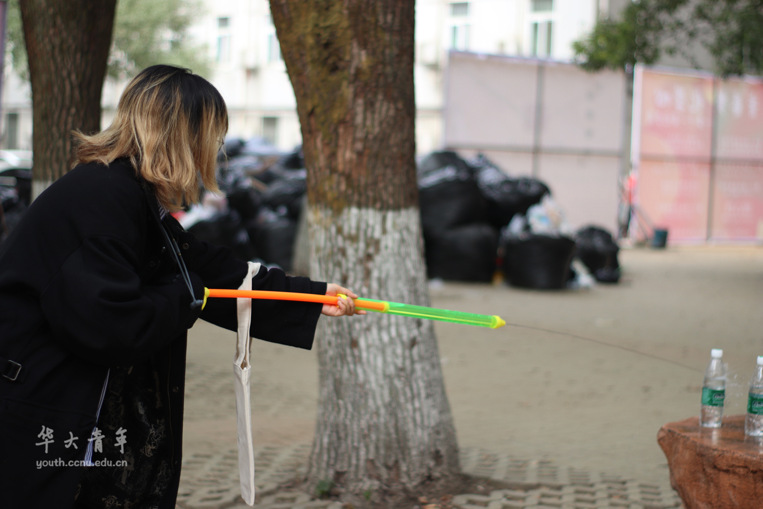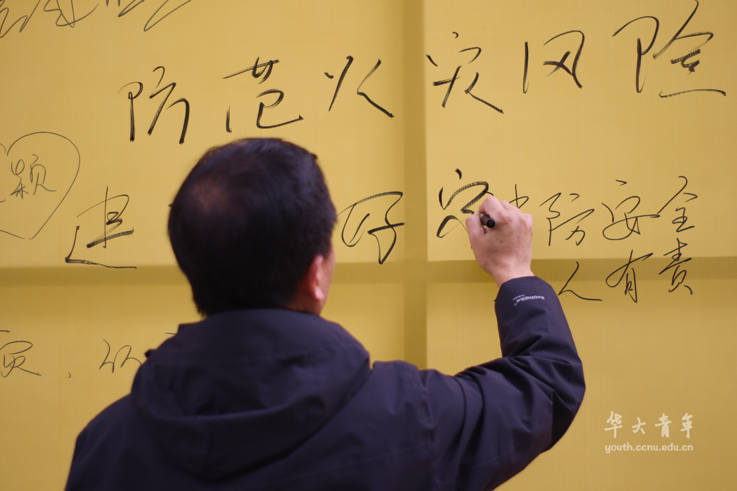 在游园会现场,付伟主任在签名墙上签字,宣布活动正式开始。在一段啦啦操舞开场表演后,现场气氛逐渐热烈起来。“火眼金睛”、“穿越火线”、“水枪滋滋”、“知识速答”、“步步惊心”、“你比我猜”等七个趣味游戏热闹非凡。同学们在互动中增强自身消防安全意识,在游戏中掌握了消防小知识。