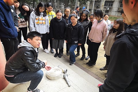 专业演示结束后,在保卫处消防科老师的辅助下,学生助理们依次体验了灭火器以及消防栓的使用过程,并在使用过程中向专业老师提出问题。大活物业助理杨艳表示:“只有在实践操作中才能发现问题,学习使用这些消防用具既是对我们工作的负责,也是对自己生命安全的负责。”
