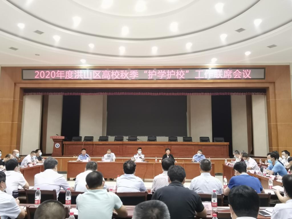 8月26日上午9:00,2020年度洪山区高校秋季“护学护校”工作联席会议在我校科学会堂一楼报告厅举行。洪山区委常委、分局局长张光敏,副局长杨雄才、华中师范大学校长郝芳华、副书记查道林、副校长任友洲、副校长彭双阶、洪山区36所高校保卫部部门负责人、武汉市局国保支队二大队大队长薛涛、经侦、人口、治安、刑侦等大队主要领导以及10个属地派出所主要领导参加此次会议,会议由杨雄才同志主持。