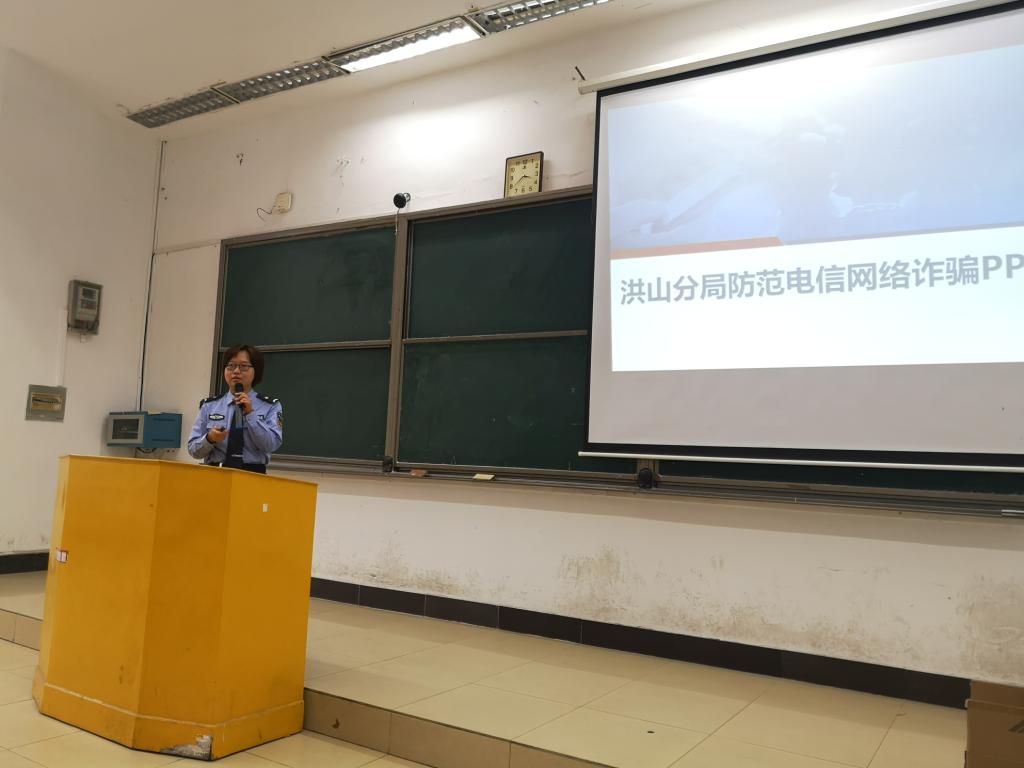 9月27日下午,数统学院在6号楼6101教室顺利举行“防范电信网络诈骗”安全教育系列讲座。本次讲座由保卫部(处)、数统学院共同举办,洪山公安分局马房山派出所刘文娟警官主讲,面向学院全体大一新生,以切实增强学生安全意识、提高学生安全防范技能。
