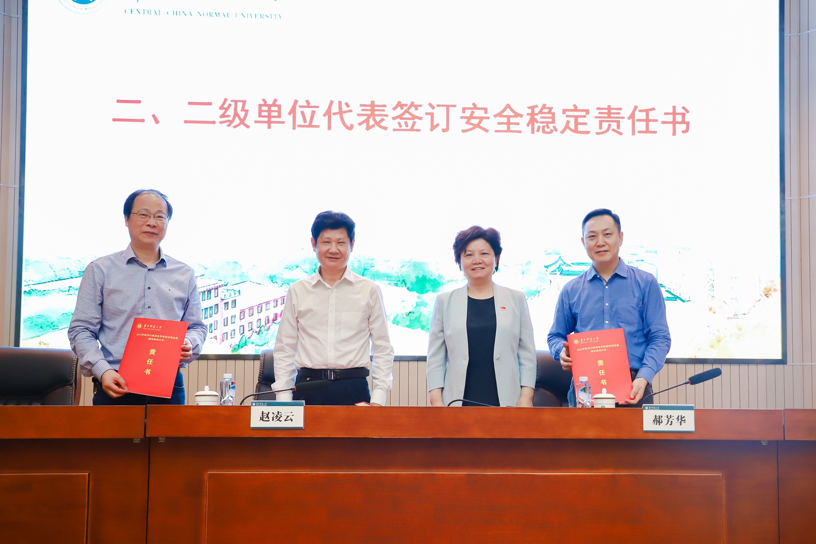 会上,外国语学院、化学学院、本科生院、后勤保障部等二级单位代表签订综治维稳工作责任书。