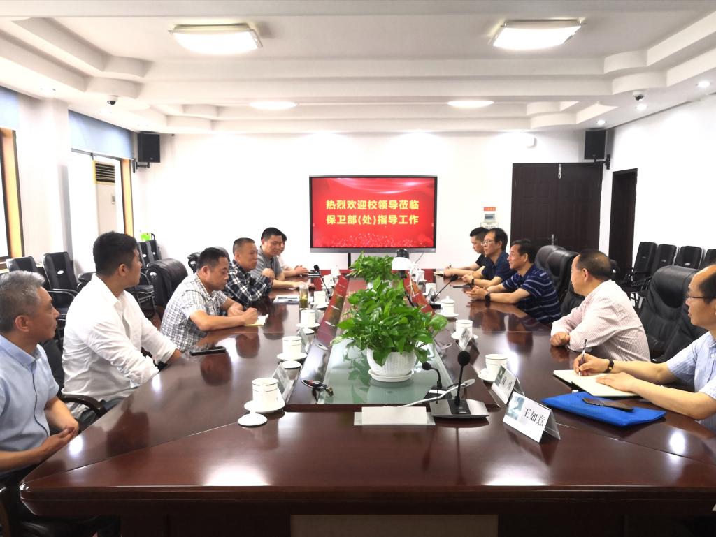 2021年5月12日上午武汉理工大学后勤(集团)总经理赵高山,副总经理靳勇、王如意,发展办主任袁传品,资产管理公司经理袁涛、办公室主任李盛一行5人莅临我校调研校园快递运营模式及管理工作。