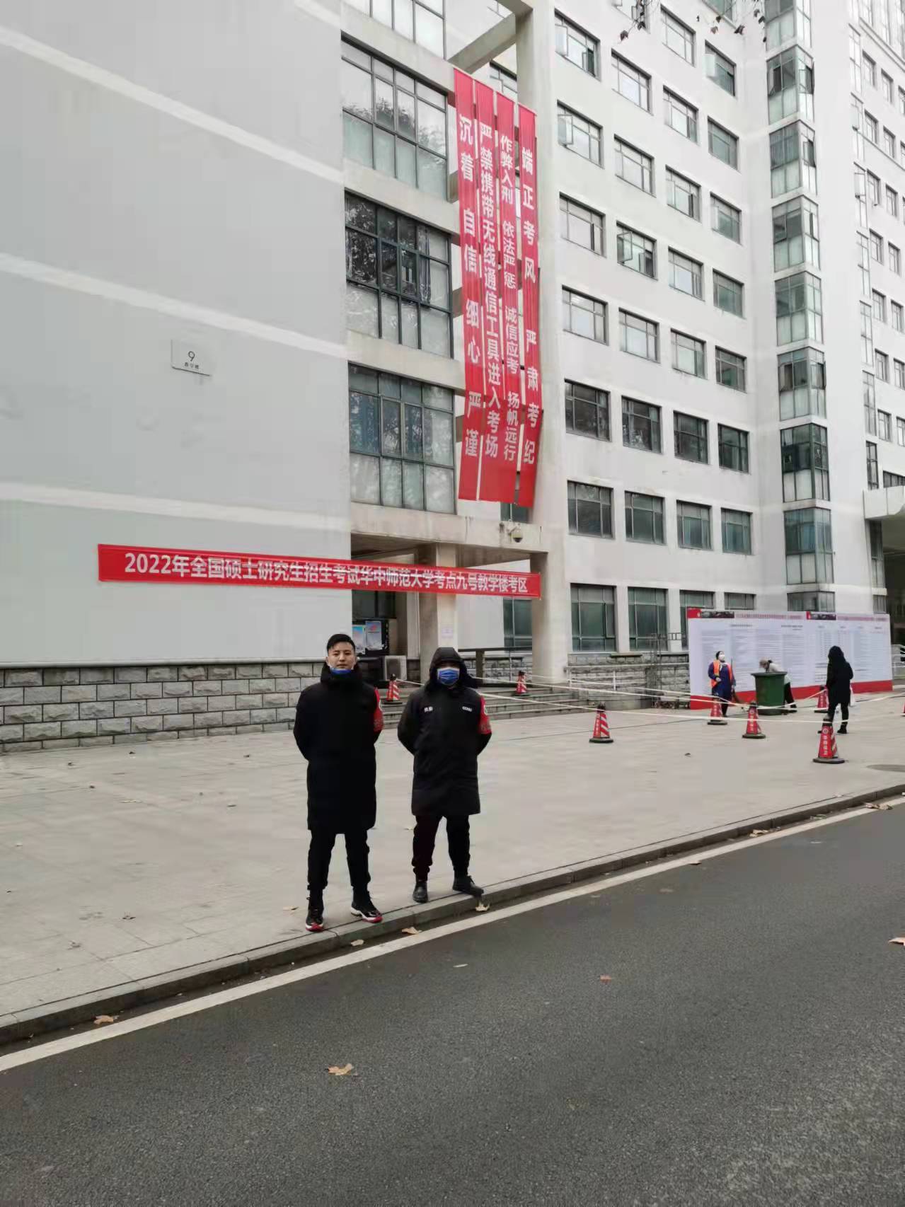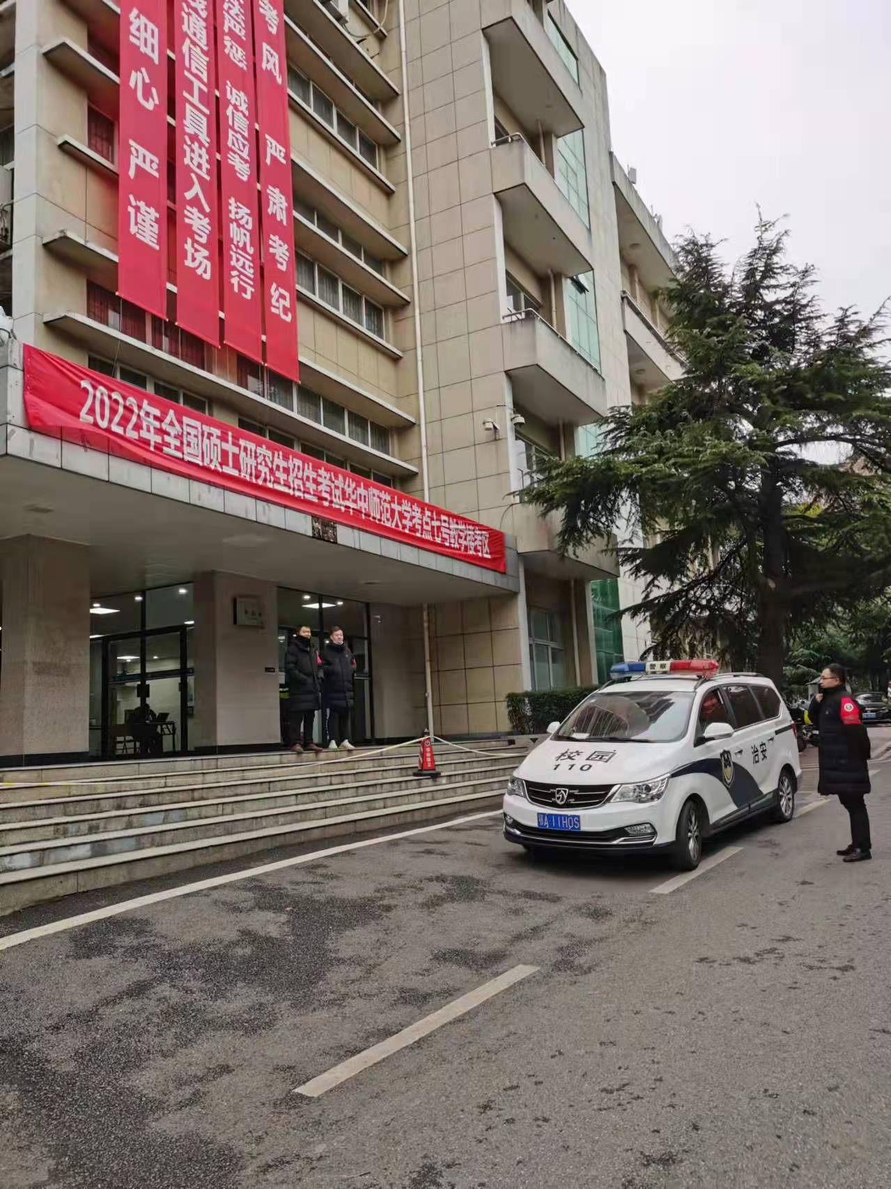 12月25日,2022年全国硕士研究生招生考试正式开始。保卫部(处)严格落实学校关于考试工作的安保部署以及疫情防控的工作要求,全力做好考试期间的安全保卫工作,给广大考生营造一个安全、有序、和谐的考试环境,保障考试工作平稳、顺利进行,为考生提供优质、安全的保障服务。天气虽冷,爱意很暖,在雨雪中护考的华大保卫人用心、用爱守护考研学子的梦想。祝福所有考生:考研加油,梦想成真!