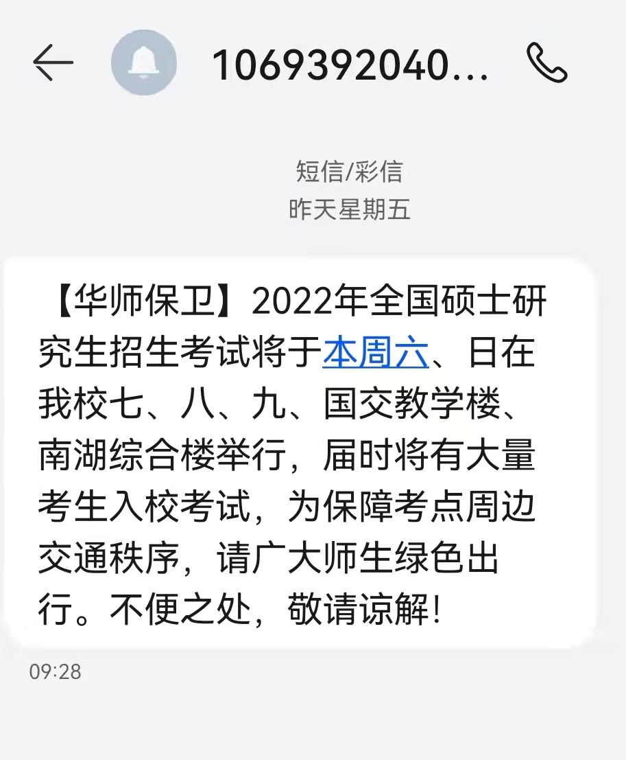 温馨短信提醒师生绿色出行,保障考点周边交通秩序