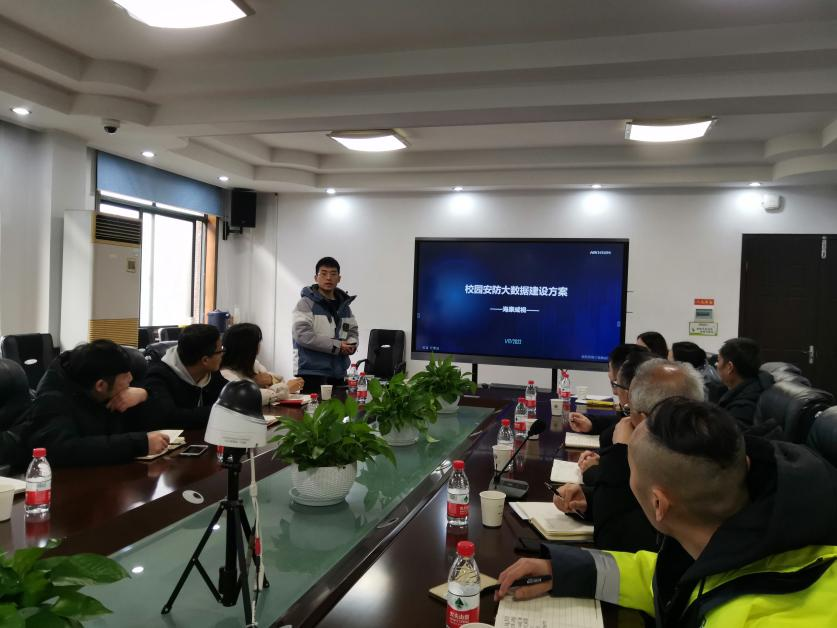 首先,杭州海康威视数字技术有限公司工程师吴相杰从建设背景、建设内容、成果价值三个方面向大家详细讲解了“校园安防大数据建设”方案,并与参会人员就我校现有安防平台的问题以及建设难点进行交流。