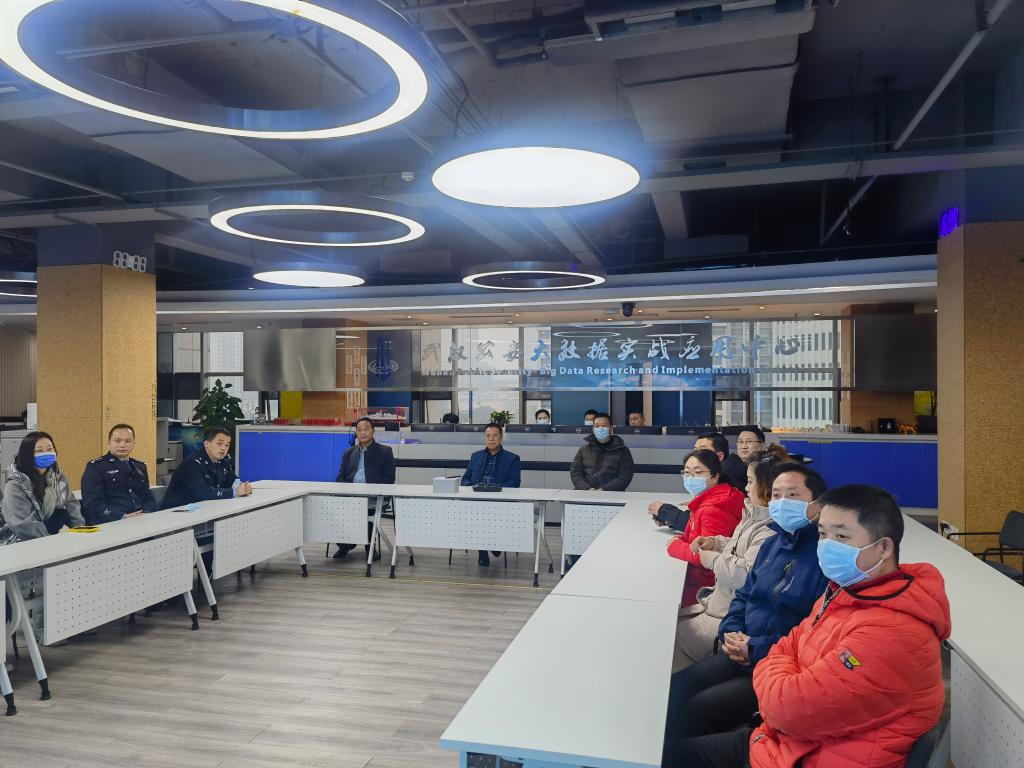 紧接着,在武汉公安大数据实战应用中心,大家认真听取了市公安局在大数据的背景下,如何通过信息化手段做好精准反诈、青少年犯罪研究以及舆情处置等方面的专题介绍。双方就高校反诈工作的新理念、新举措进行了交流和探讨。