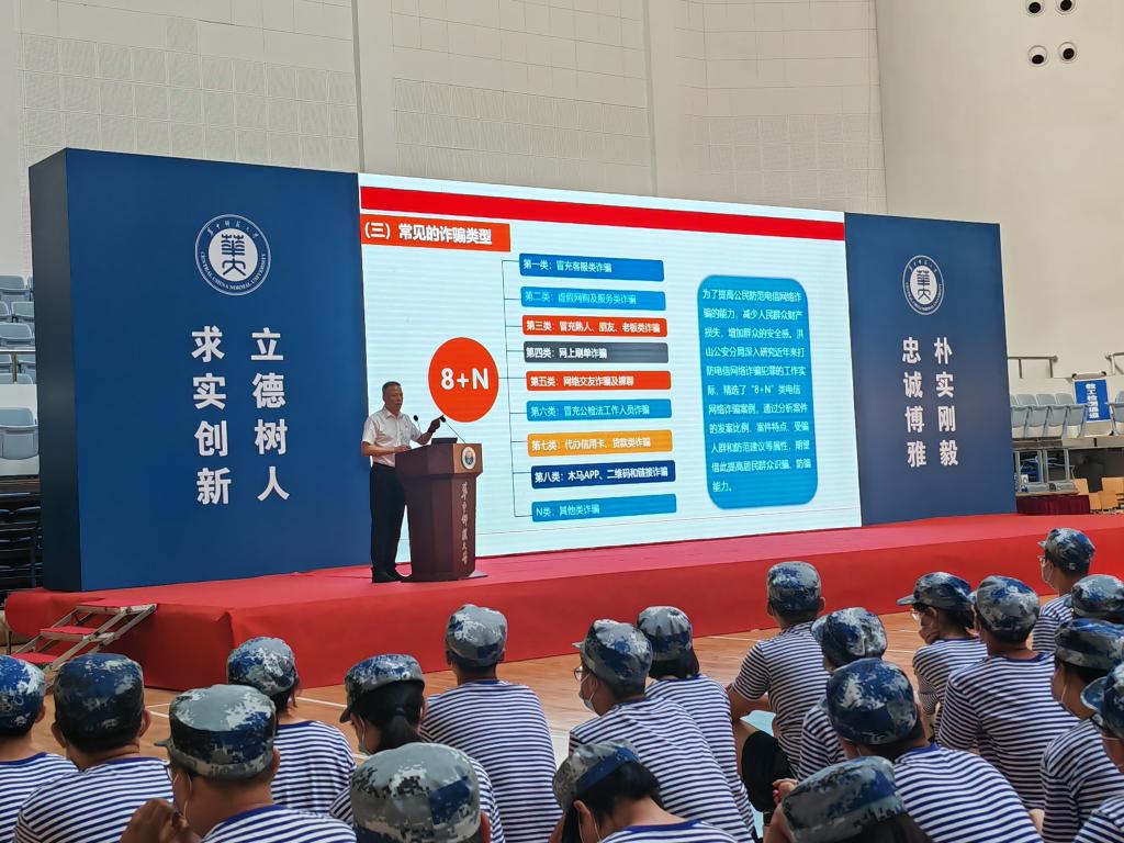 当前新型诈骗手段多,网络诈骗陷阱多,学生无法一一分辨陷阱,如冒充客服类诈骗、虚假网购及服务类诈骗、冒充熟人、朋友类诈骗、网上刷单诈骗等,王东爽部长结合案例向广大新生介绍了当前诈骗的七种类型,帮助学生更好识别和防范诈骗陷阱。