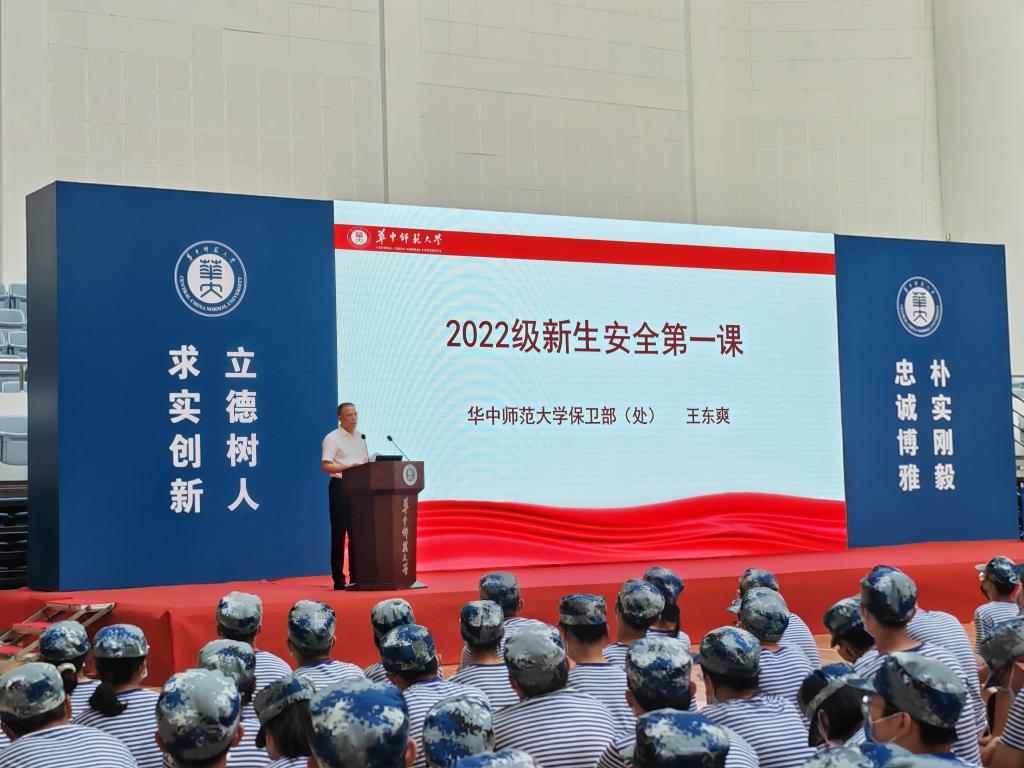 2022年9月15日,华中师范大学新生安全第一课在佑铭体育馆召开,本次讲座面向全体2022级新生,以期增强学生安全意识、提高学生安全防范技能,从源头上有效预防和减少涉及学生安全事故的发生。