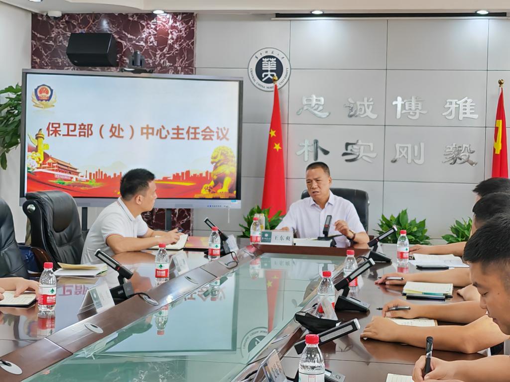 2022年9月13日上午9:30,保卫部(处)召开中心主任会议,全体中心主任参加,会议由保卫部(处)长王东爽主持。