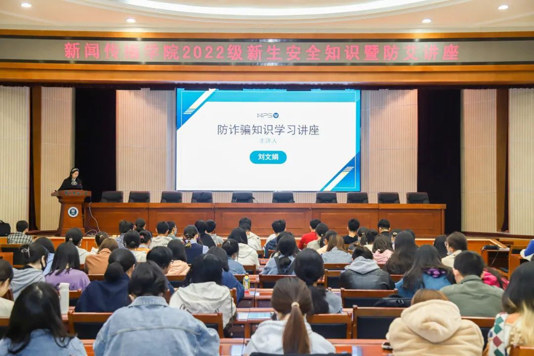 10月9日,我院在科学会堂顺利举行了新生防电信诈骗安全知识暨防艾讲座。武汉市洪山区公安分局马房山派出所专职外管警官刘文娟,校医院公共卫生科主任杨昌友,我院2022级研究生辅导员王楚馨及2022级本科生辅导员李鸿出席,我院全体2022级研究生、本科生共同参加。本次活动由李鸿主持。