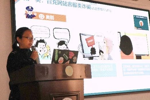 在此次教育讲座中,刘民警讲述了八种诈骗类型,通过表格图文以及多个实际案例揭示了诈骗人员的狡诈、诈骗方式的多样。