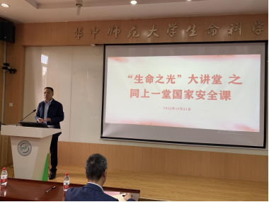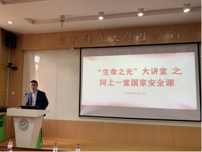 华大生科讯(通讯员:金姝玉)为深入学习宣传贯彻党的二十大精神,进一步加强学院理论宣传教育工作,生科学院党委于近期成立理论宣讲团,打造集理论宣讲、政策研读、专业交流、文化传播等于一体的“生命之光大讲堂”。10月21日下午,“生命之光大讲堂”第一讲在我院5301报告厅举办,邀请校保卫处处长王东爽以“同上一堂国家安全课”为主题向全院教职工进行宣讲,进一步提高全院教职工的安全意识,筑牢安全防线。本期培训由院党委书记郑宁主持。