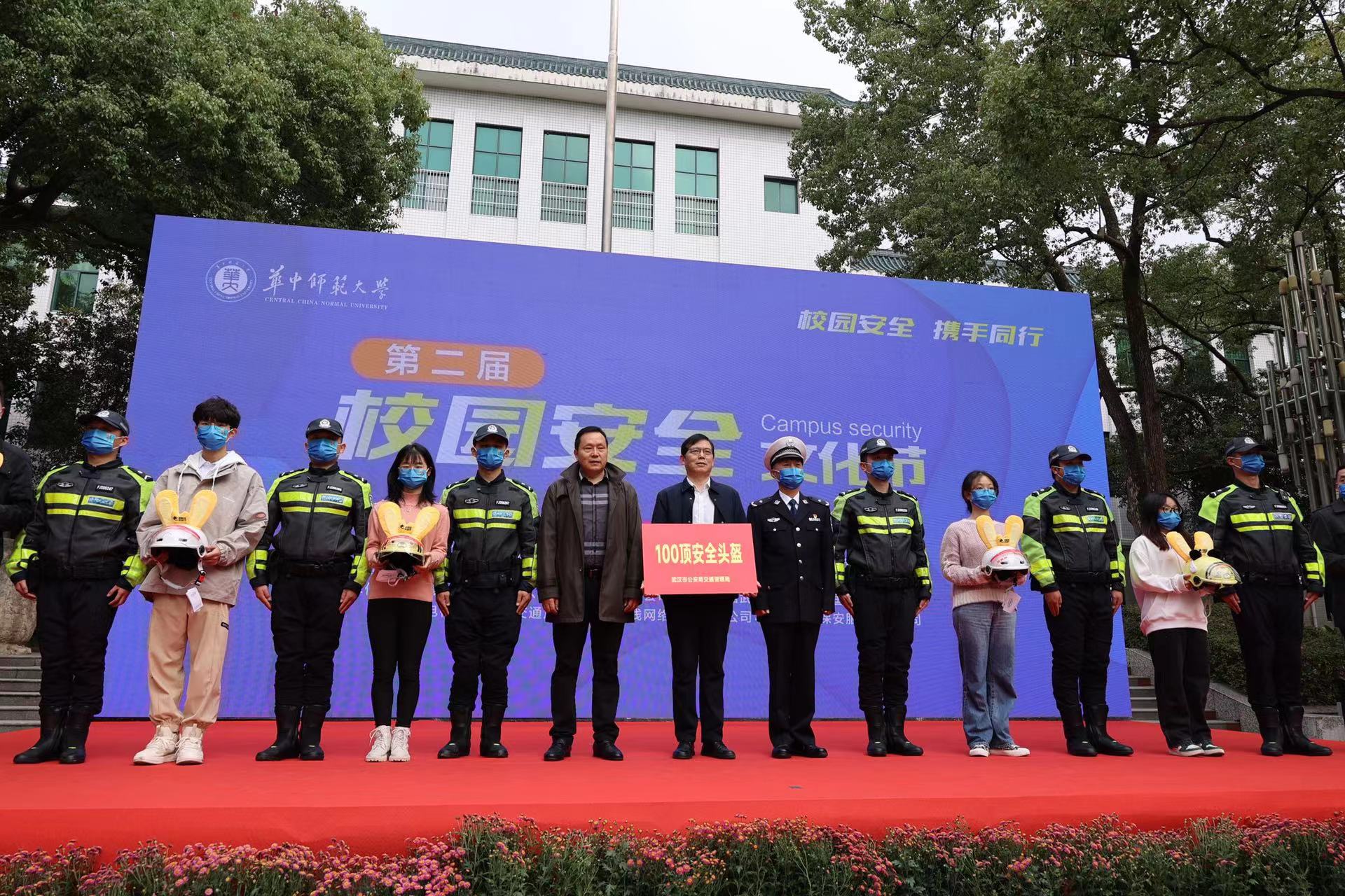 安全是永恒的主题,为助力此次安全文化节,武汉市公安局交通管理局党委副书记、政委高林与湖北广播电视台交通广播总监李伟,代表武汉交警、楚天交通广播给华中师范大学的师生捐赠100顶安全头盔,将交通安全的理念送进校园,希望以此加强警校之间的联动配合,共同筑牢校园交通安全屏障。