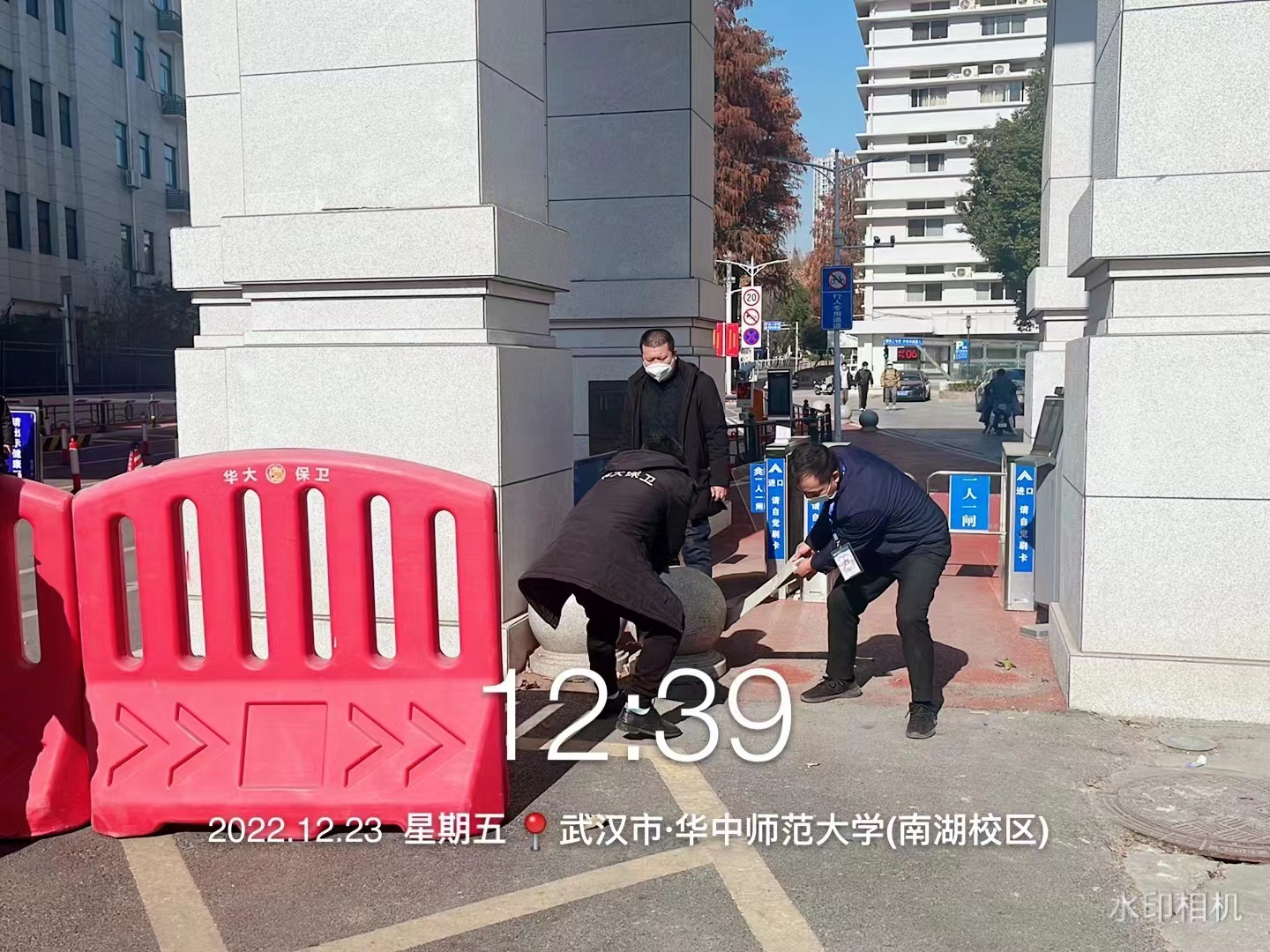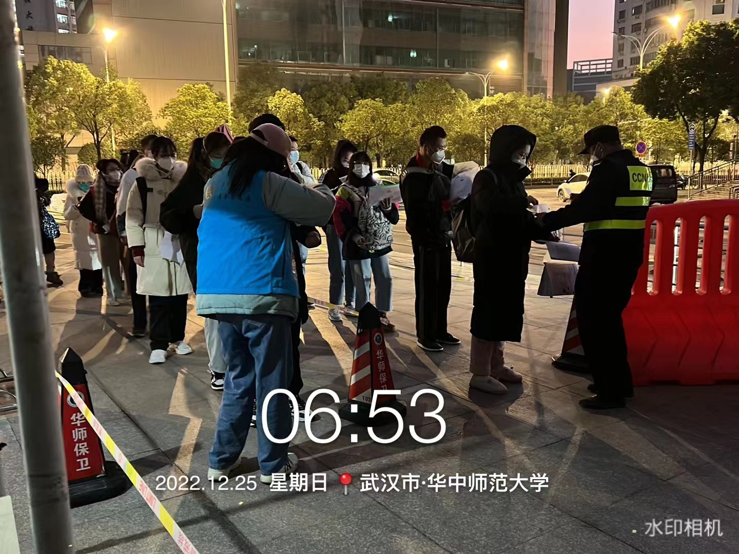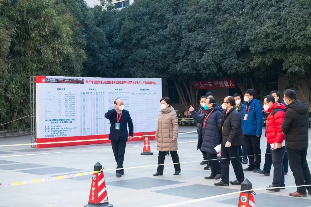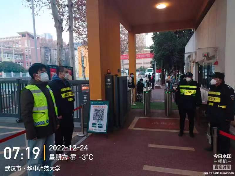 在桂子山北门、东门、南门、南湖校区北门分别安排保卫干部和学生志愿者,查验考生准考证、身份证、测量体温等,组织考生有序进校。