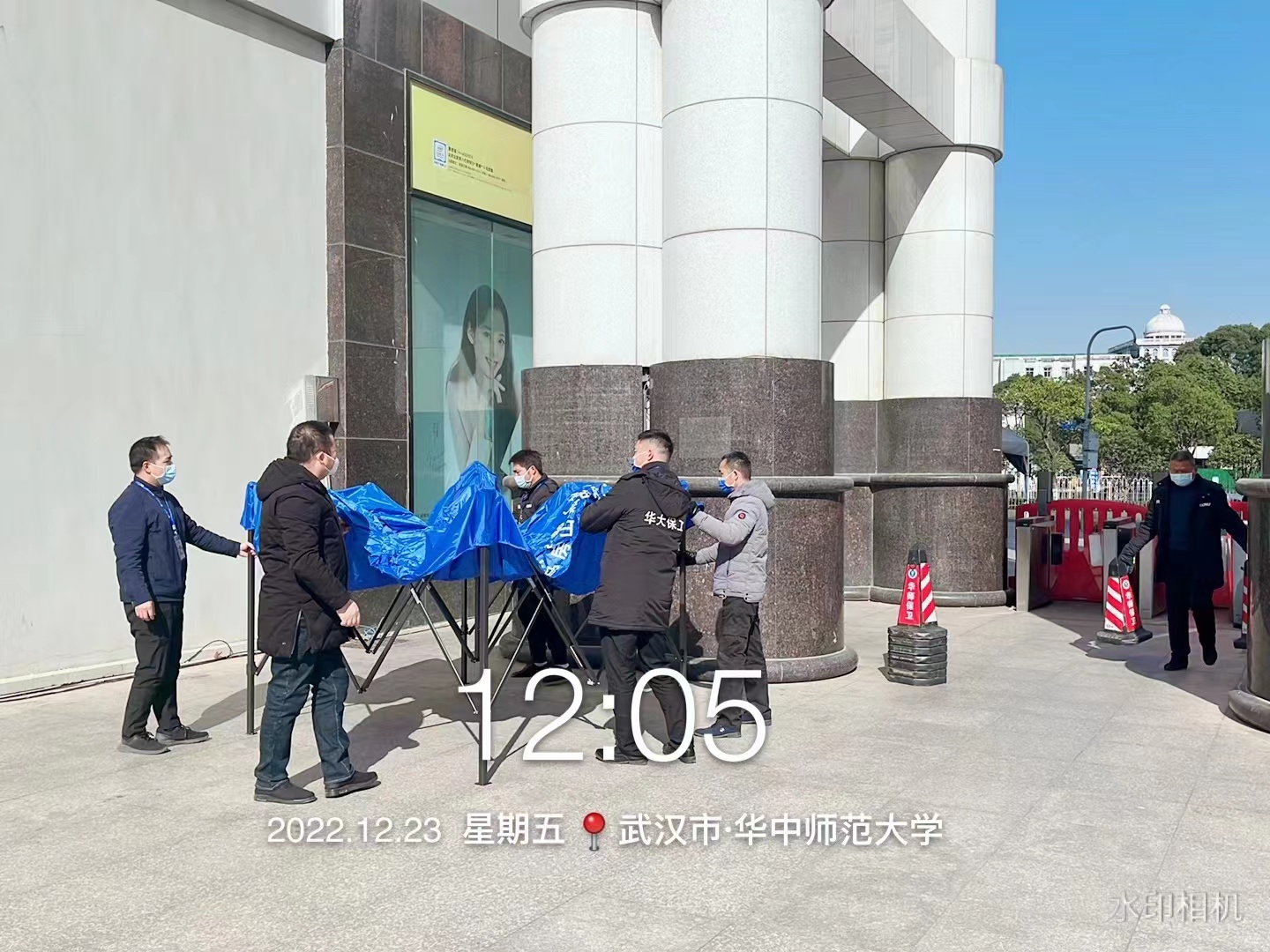 保卫处在各大门摆放防疫帐篷,设置临时留观点,布置进校通道及考场进出通道。