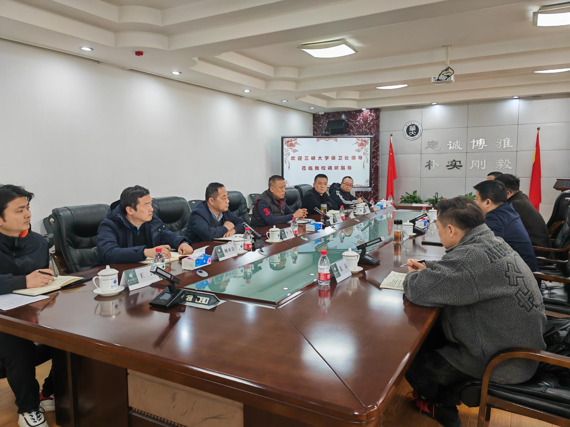 2023年2月28日上午9:30,三峡大学保卫处陈鹏处长一行来我校考察学习。我校保卫部(处)王东爽部长、李丹副部长、黄凯副部长及相关中心主任热情接待并一同参加座谈。