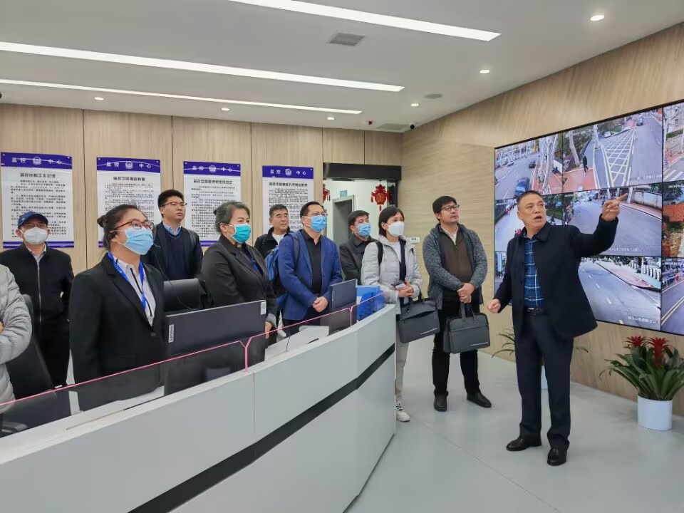 华中师范大学保卫部(处)长王东爽就高校校园安全管理体系建设以及平安校园建设数字化赋能情况,介绍了我校智慧校园推进平安校园建设的成功经验和做法,并带领考察团一行到我校监控指挥中心、校园各重点路段进行实地考察学习。