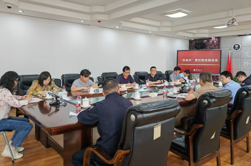 2023年4月19日下午,“反电诈”警校联动推进会在学校保卫处三楼会议室召开,华中师范大学党委副书记陈迪明、洪山公安分局副局长杨雄才、马房山派出所所长吴鹏以及学校办公室、学生工作部、离退休工作处、人事部、保卫处、后勤保障部(社区)等相关单位负责人参会。