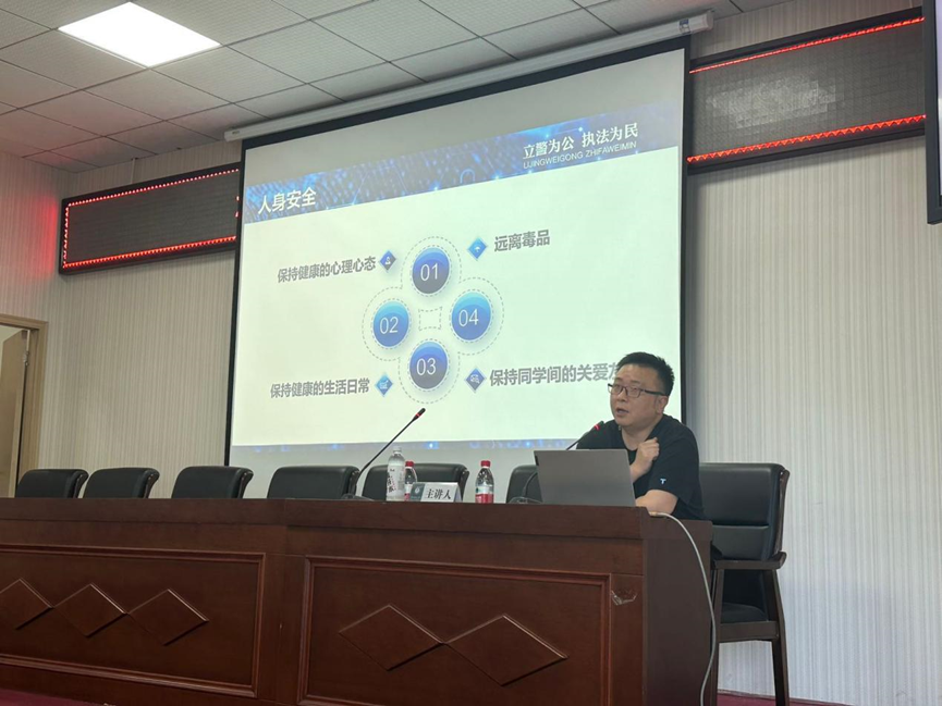 在保障人身安全方面,陶涛强调了保持健康的心理心态的重要性,劝诫同学们要远离毒品,保持健康的生活日常,和同学们保持关爱。面对层出不穷的电信诈骗,社会经验不足的大学生尤其容易中招。在关注网络安全方面,陶涛细致讲解了针对大学生最常见的诈骗方式,如刷单返利、冒充客服、虚假征信等,特别提到最近最新的AI换脸诈骗,提醒同学们要提高警惕,谨防诈骗。在守卫国家安全方面,陶涛指出新的时代背景下,国家安全的内涵不断扩展,他提醒同学们要加强安全防范意识,坚决抵制“三股势力”煽动和渗透,筑牢线上线下安全防线,以实际行动守护国家安全。