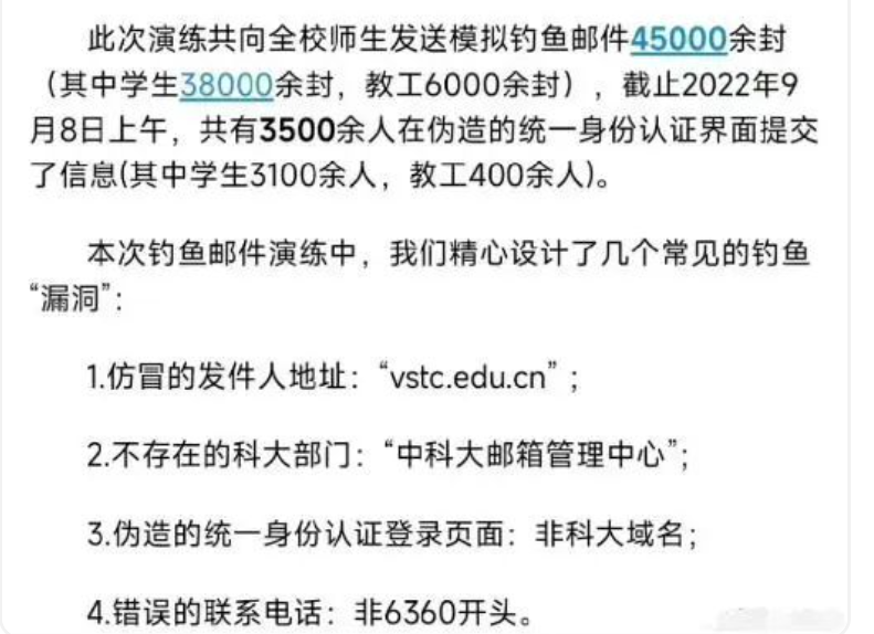 去年9月,中科大网络信息中心也搞了一次官方“钓鱼”活动曾引发关注。