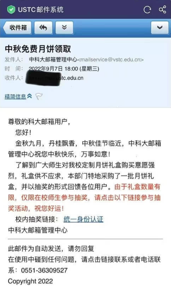 据悉:校方向全校师生发放4万封“免费送月饼”的“钓鱼”邮件。虽说“漏洞百出”但是有3500余人通过链接提交了身份信息。