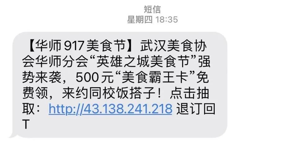 据悉:该短信由学校保卫处投放是一场“钓鱼演练”。