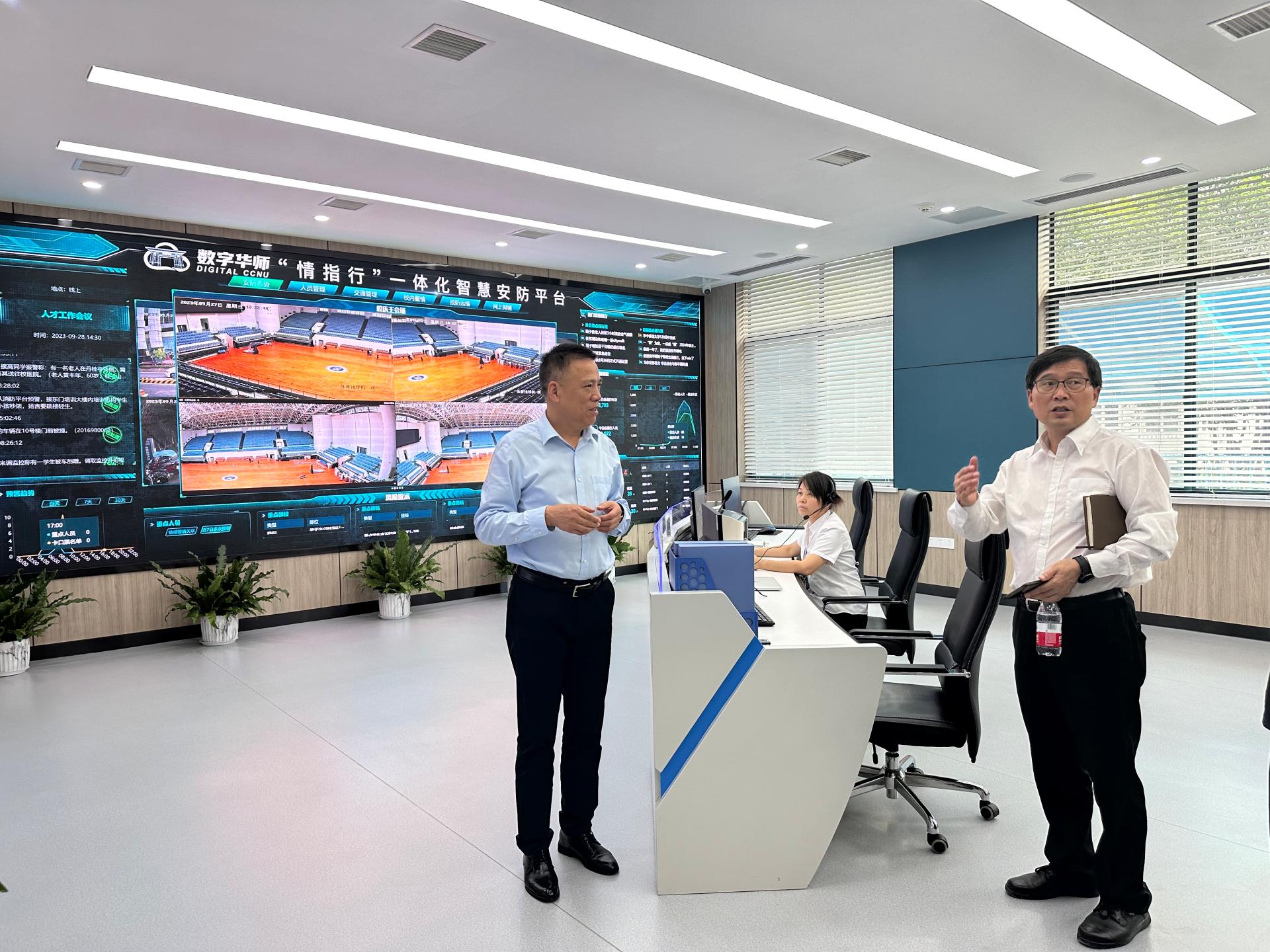 会后,任友洲副校长到监控中心考察了数字华师“情指行”一体化智慧安防平台建设情况,强调公共区域重点部位监控的全覆盖。