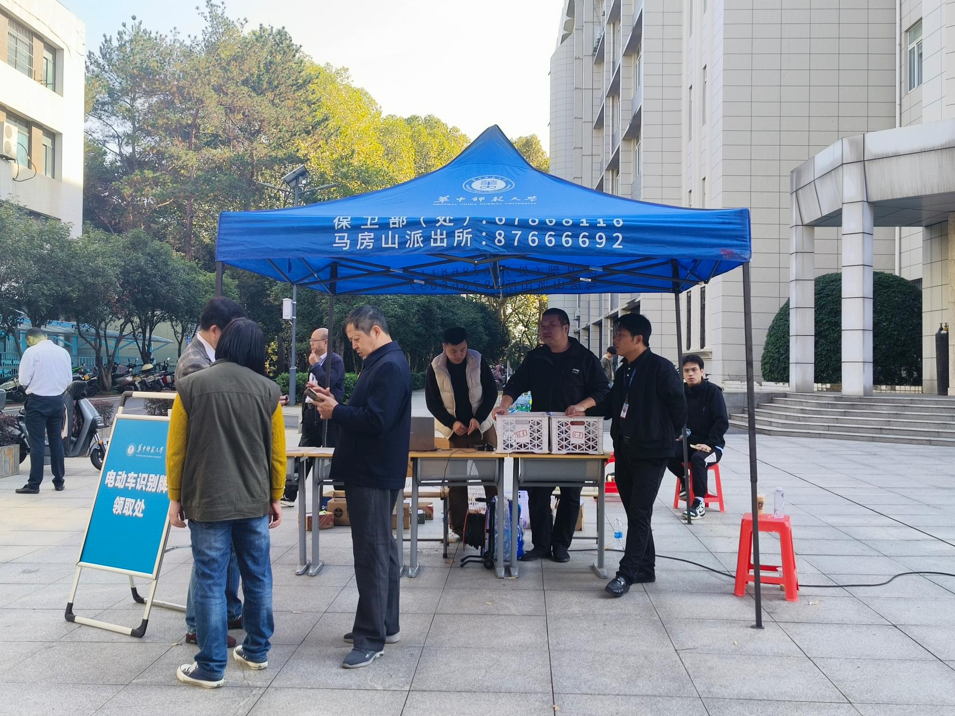 目前,第一批校园电动车识别卡已制作完毕。2023年10月18日之前已登记注册并审核通过的电动自行车车主,可以携爱车前往保卫处、南湖综合楼广场领卡并进行现场安装,领取安装时间为8:30-12:00和14:30-18:00,周末、节假日不休息,保卫部(处)竭诚为全体师生服务。