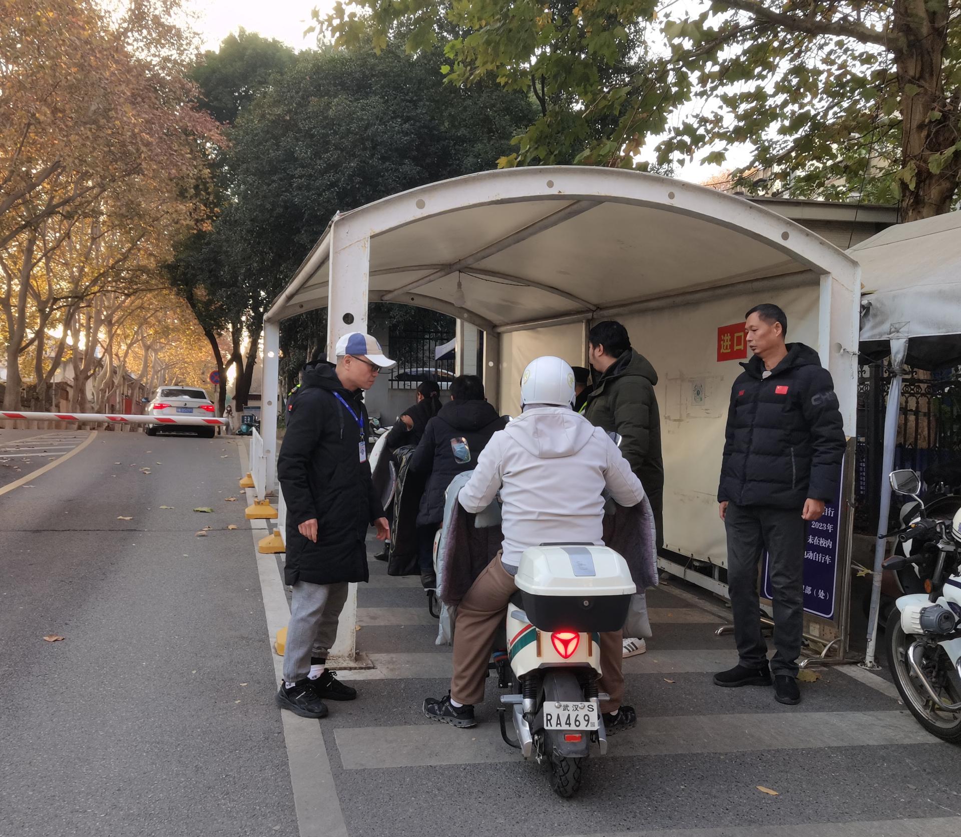 12月1日起,保卫部(处)全处干部职工到一线执勤,广泛宣传并耐心解释有关政策,禁止无校园识别卡或无效牌证的电动自行车进入校园。