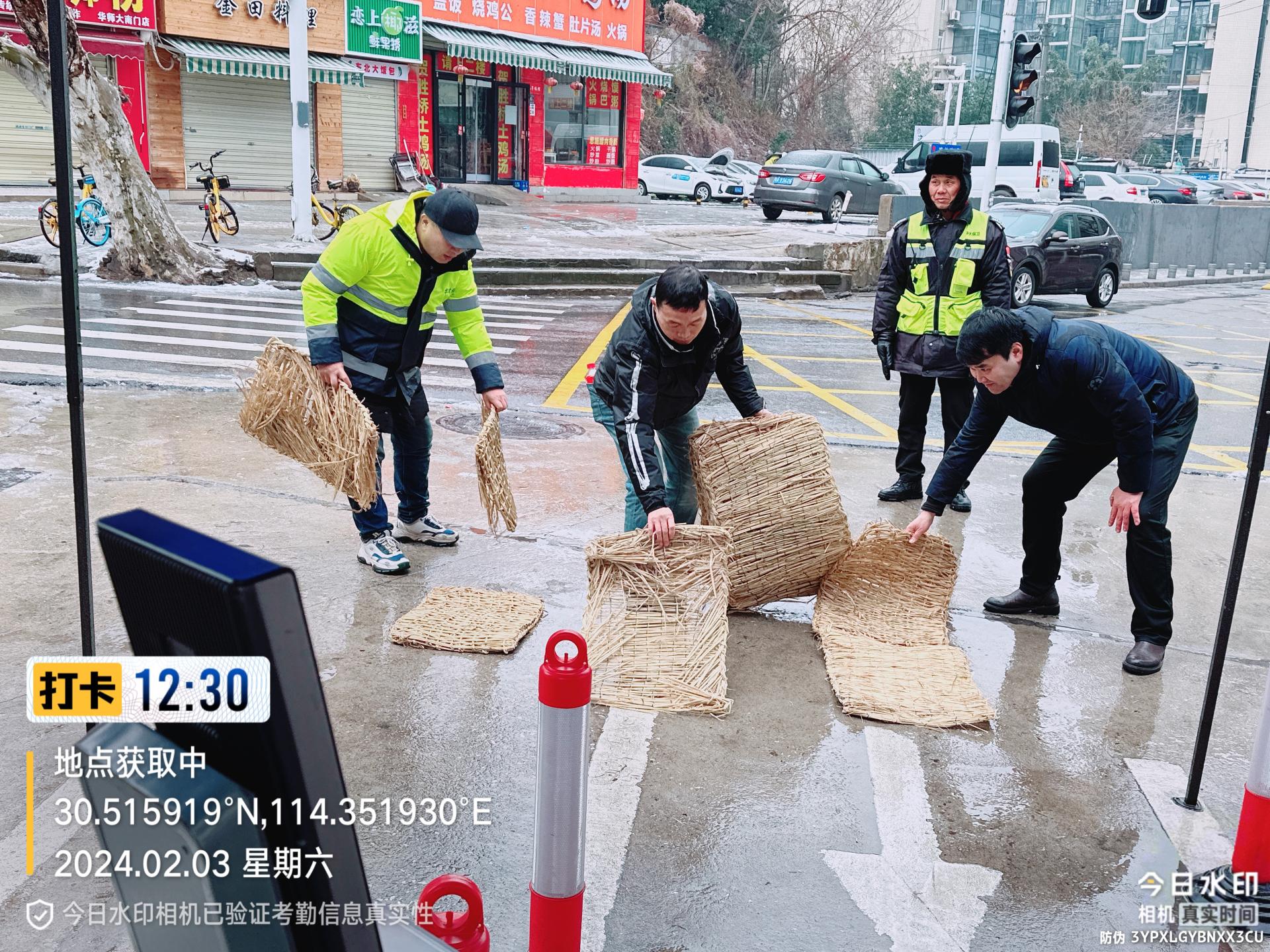 保卫部(处)干部职工全员在岗、全员在位,特别加强对校内弯道、坡道以及积雪、结冰等重点路段的力量部署,通过短信提示、警灯闪烁、喊话提醒等方式,提醒过往车辆减速慢行,并及时开展除雪铲冰工作,对路面的残冰余雪进行清除,对沿线道路抛洒融雪剂,防止路面再次结冰。同时,在各大校门行人通道铺上草垫,防止行人摔倒。对于不具备通行条件的路段,采取临时性交通管制。