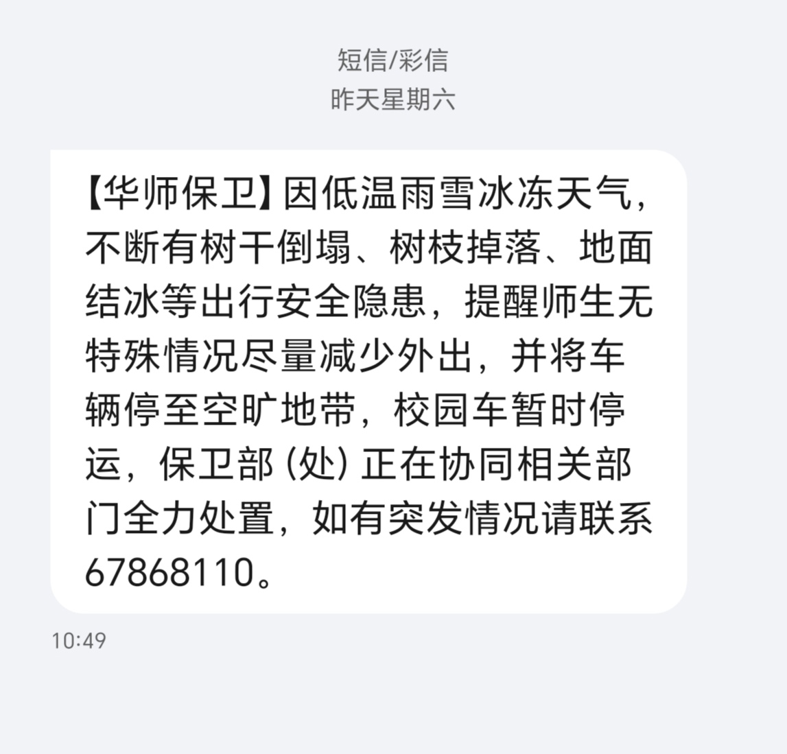 近日,受低温雨雪冰冻极端天气的影响,武汉迎来冻雨、暴雪天气,造成校园道路湿滑、结冰,树木倒塌、数枝坠落,给广大师生居民出行及交通带来极大影响,存在较大安全隐患。