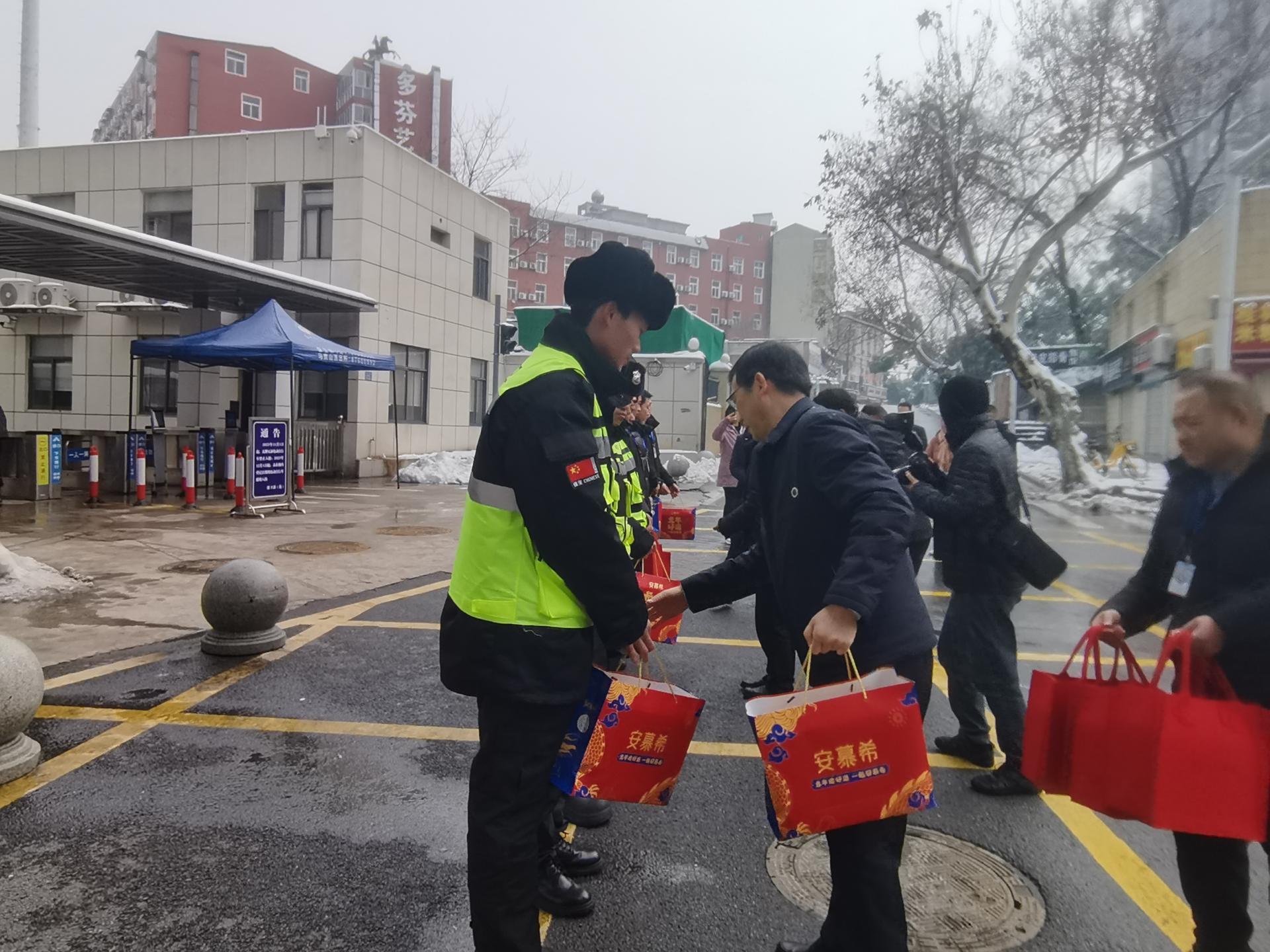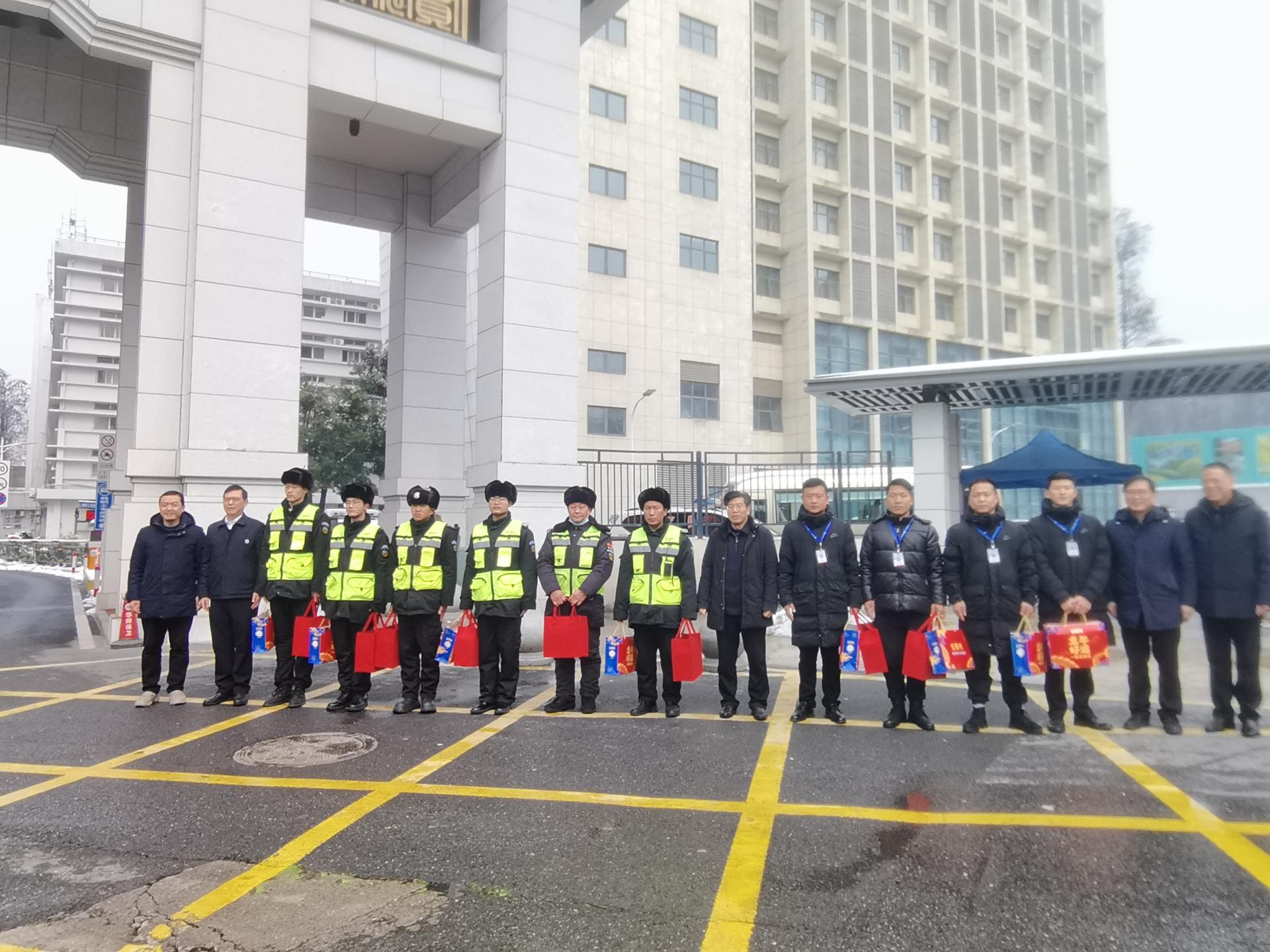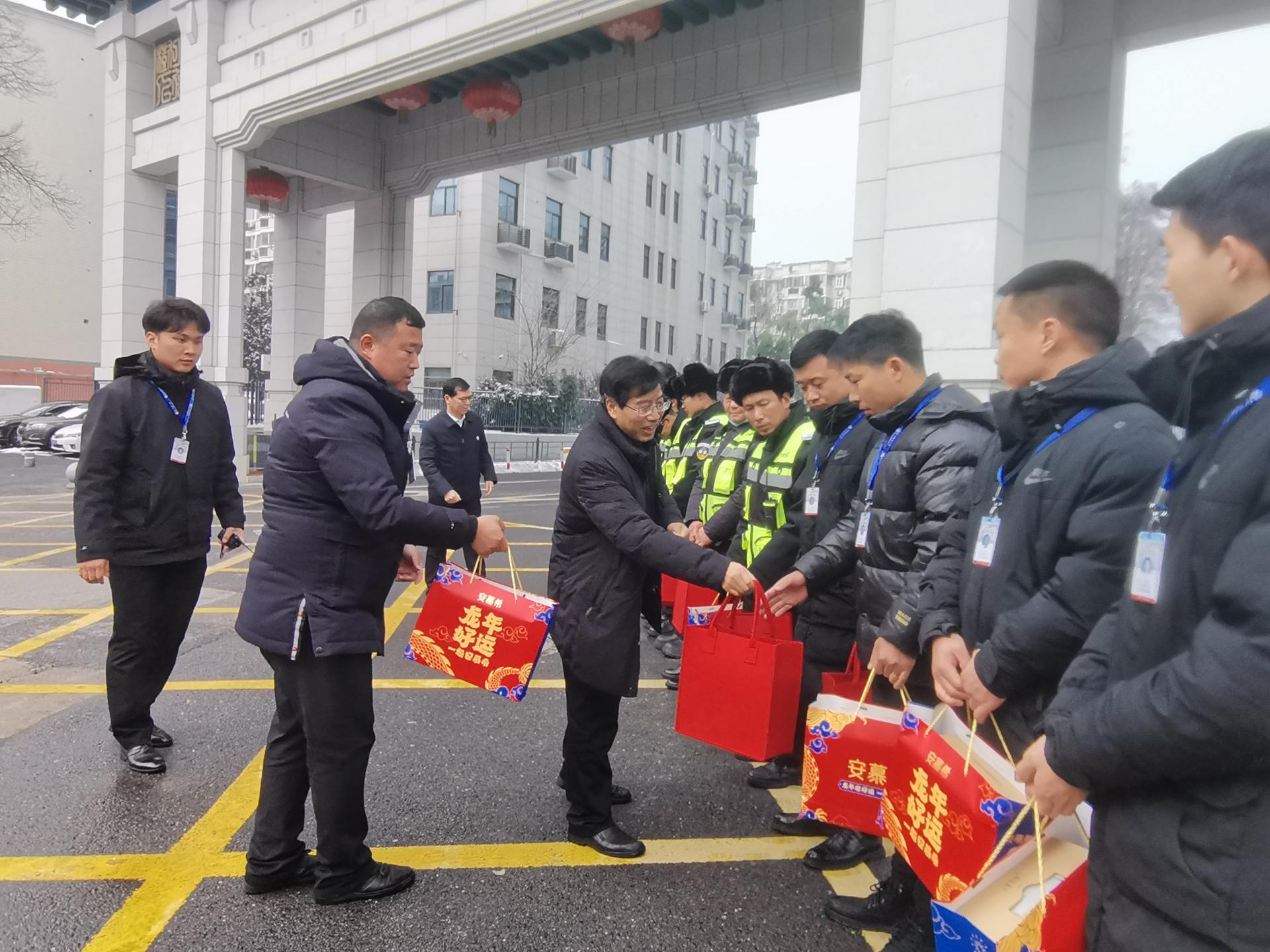 玉免辞旧岁,金龙踏春来。2024年2月7日(腊月二十八)中午,校长彭双阶带队慰问了春节期间坚守工作一线的保卫部(处)干部职工,副校长任友洲、校党委副书记陈迪明以及相关部门负责人陪同慰问。