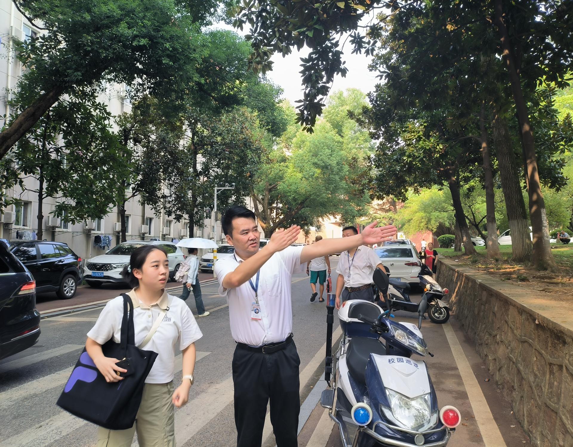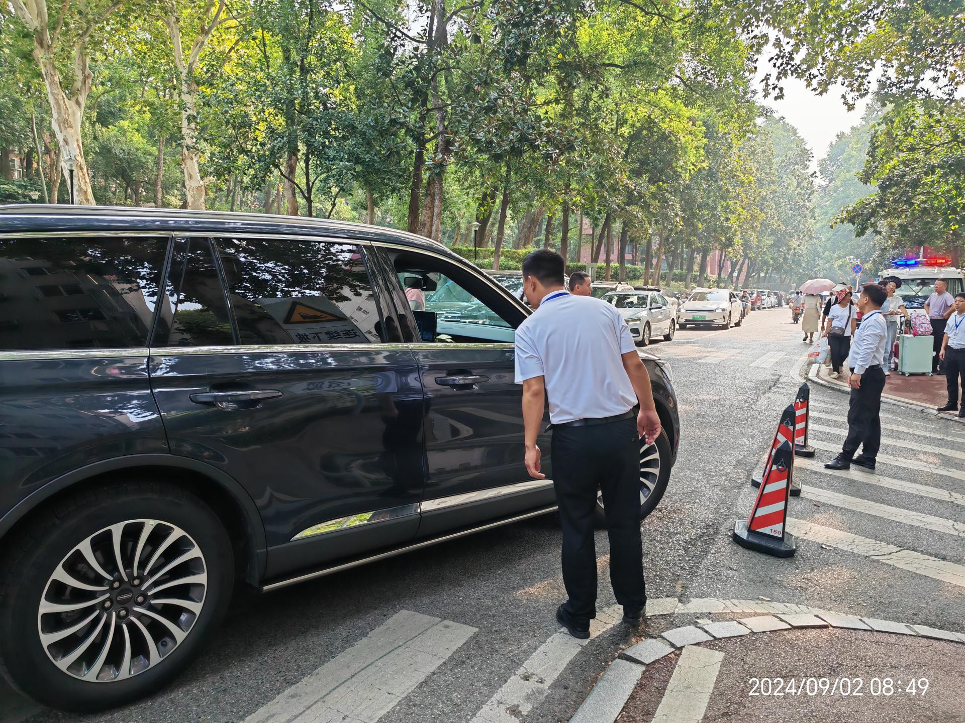 为缓解交通拥堵压力,保卫部(处)在校人流、车流密集路口路段均安排了执勤人员,并借助交警力量,积极为新生及家长提供路线指引,积极引导车辆有序驾驶、停放,确保校园交通顺畅。