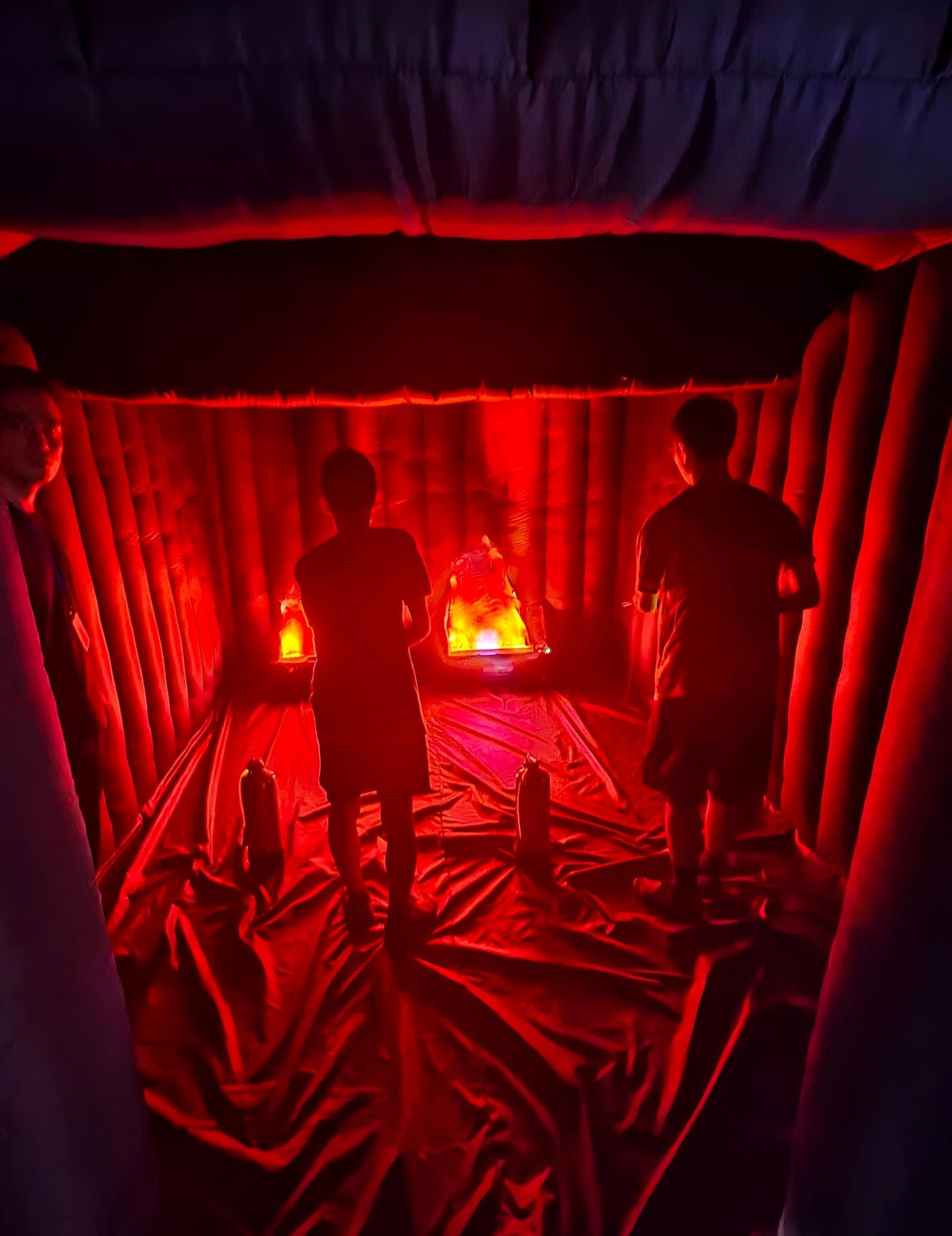 活动过程中,同学们可以身临其境感受烟雾弥漫、热浪滚滚的火灾现场。在封闭的空间、紧张的氛围里,同学们互助协作,互帮互助,学习实操各类消防器械。