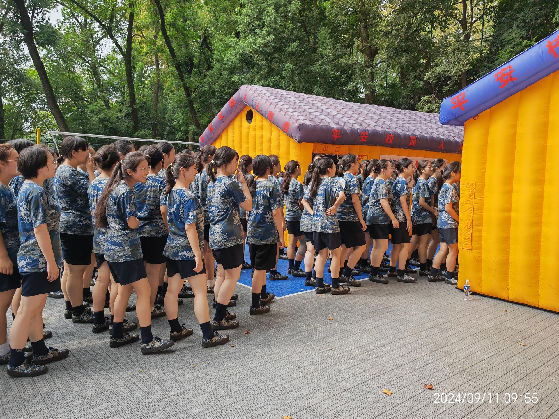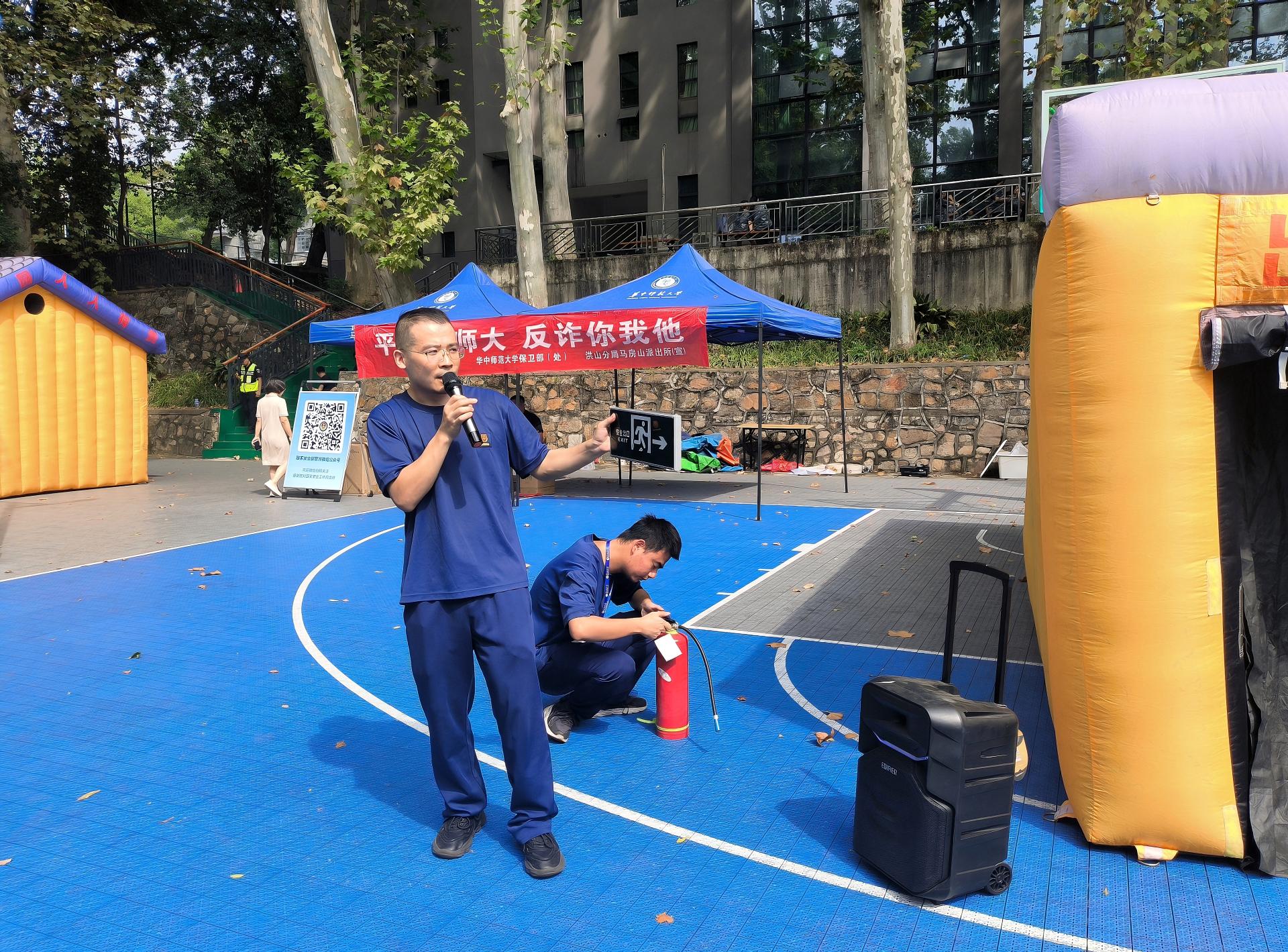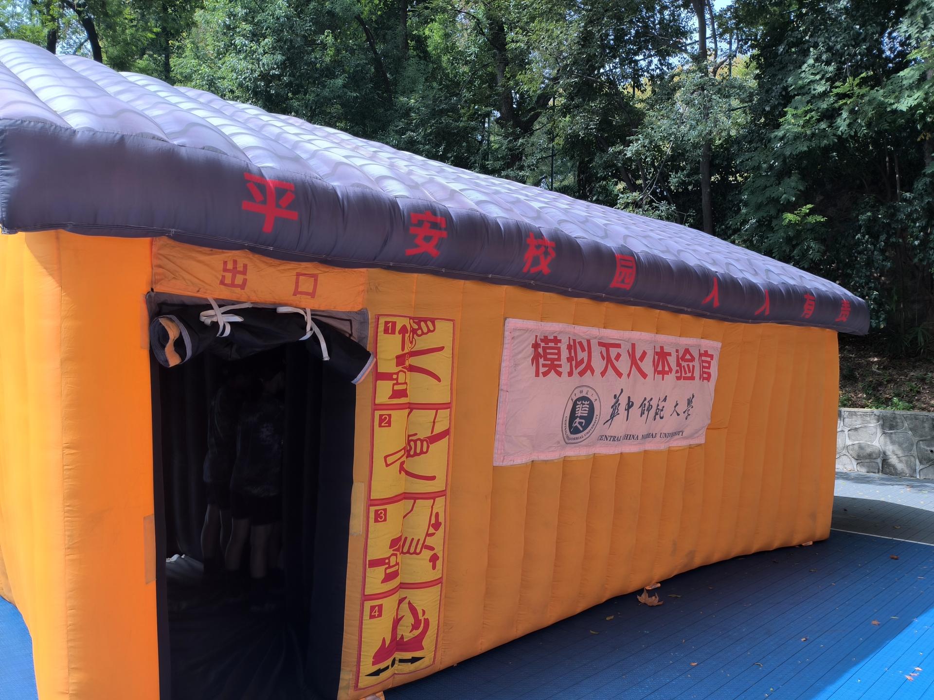 在军训场地旁,共搭建了4个充气式消防“体验馆”,分别用于模拟烟雾逃生和模拟灭火。军训间隙,保卫部(处)工作人员耐心为同学们讲解防护装备、灭火器材、救生器材等使用方法和技巧,并组织同学们有序入馆体验。