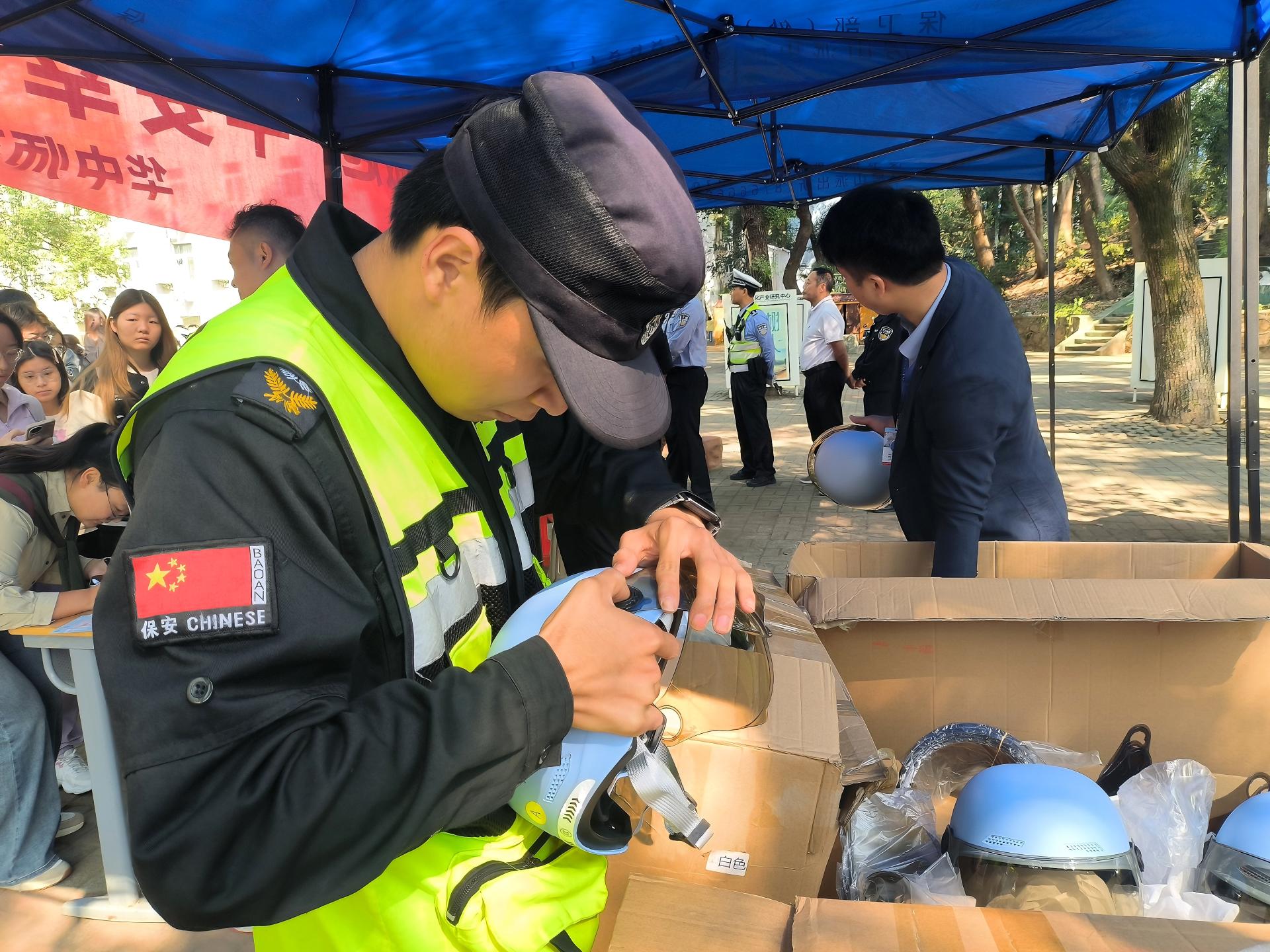 为增强校园电动自行车骑乘人员的交通安全意识,提高校园安全头盔佩戴率,防范化解校园交通安全风险,华中师范大学保卫部(处)联合校学工部、武汉市公安局洪山区交通大队发起“安全从‘头’做起,平安幸‘盔’有你”活动,预计面向全校学生免费发放约一万个“3C”认证安全头盔。