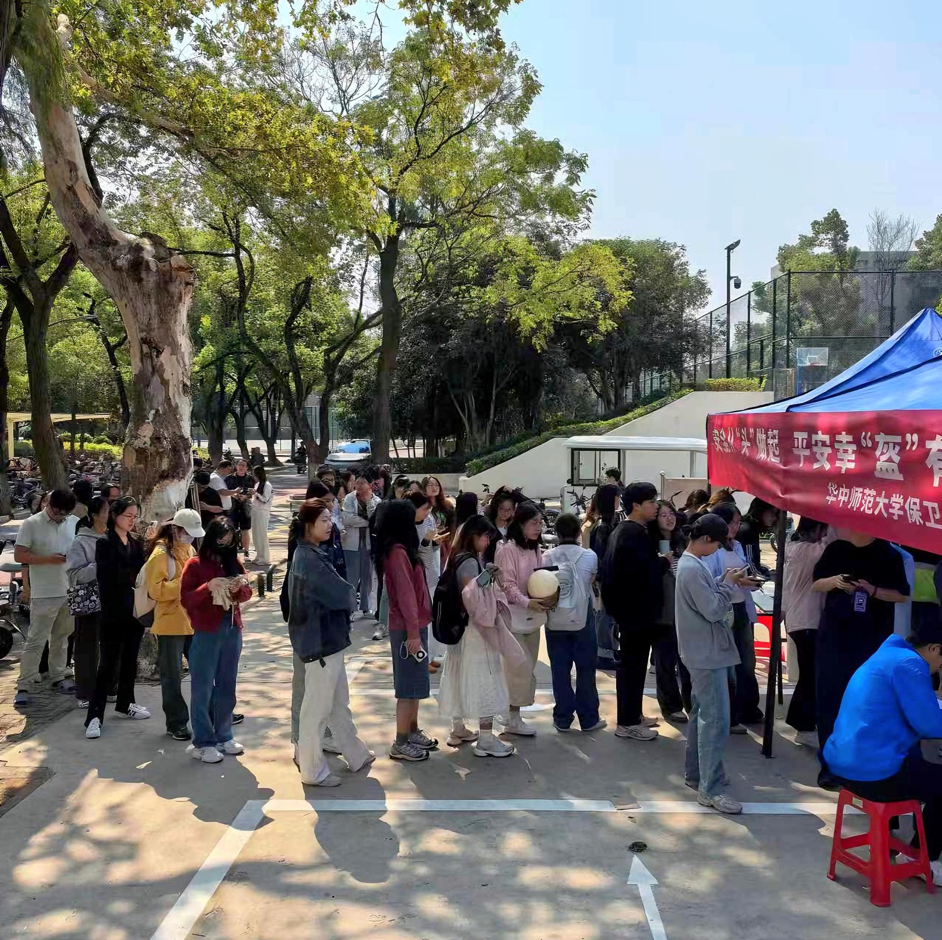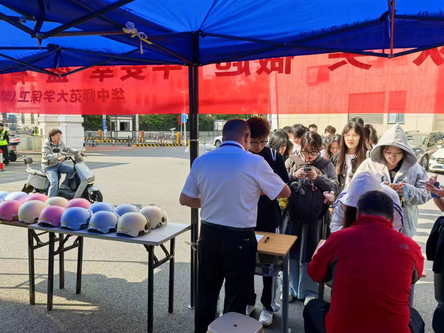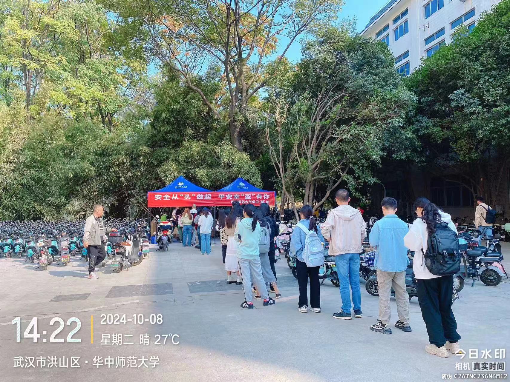 随后,桂子山校区8号楼、南门以及南湖校区点位同步开始头盔发放,同学们热情不减,领取头盔的队伍排起长龙。