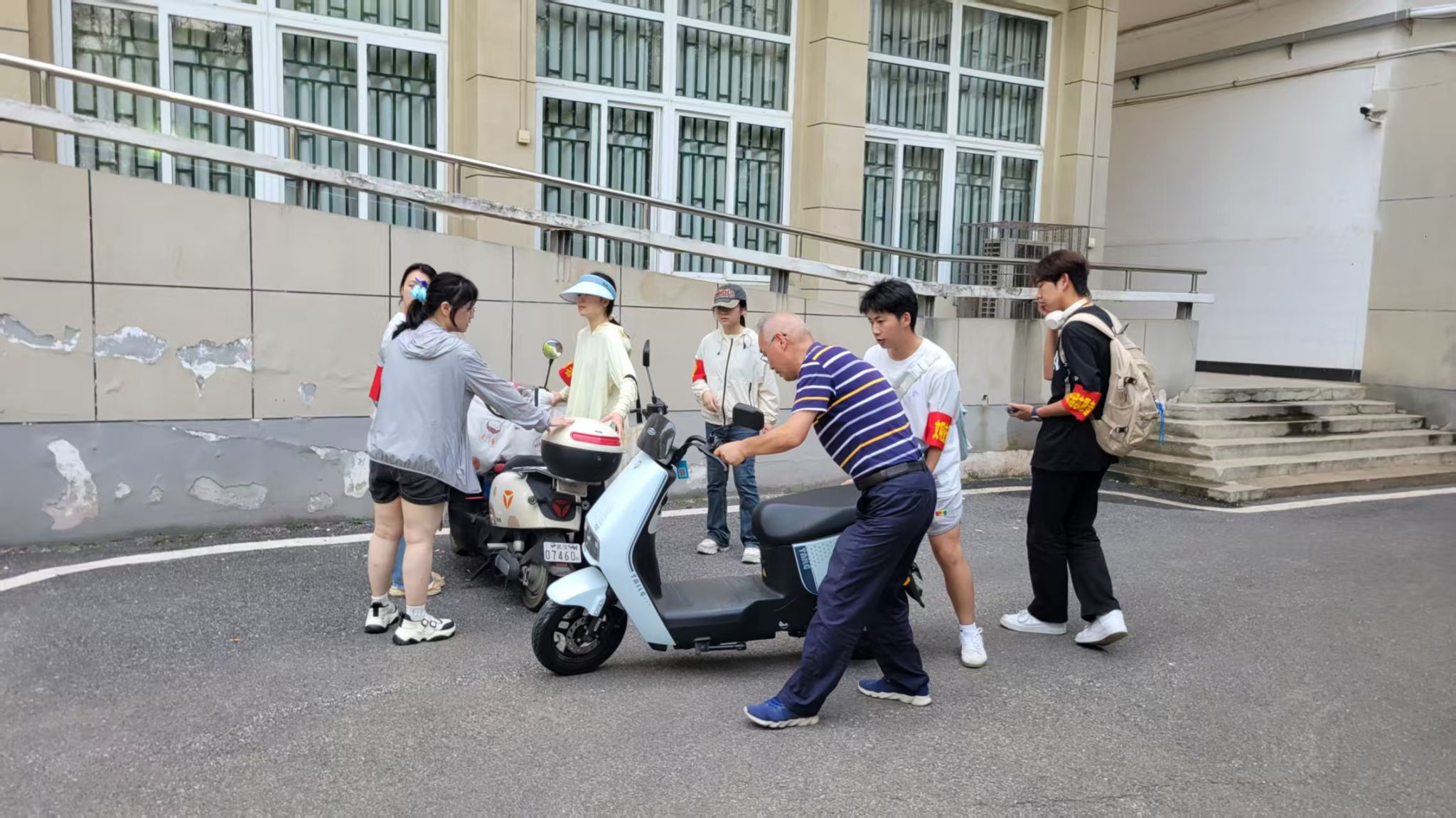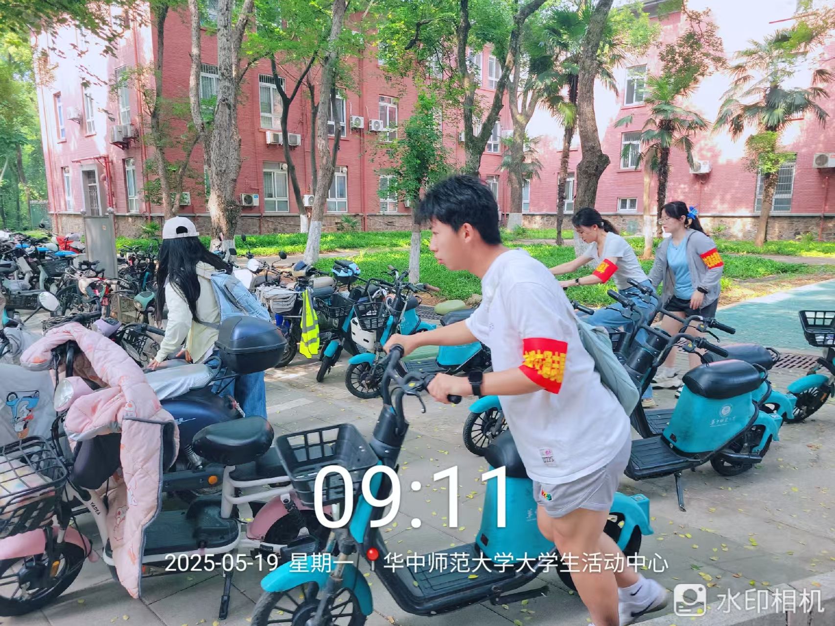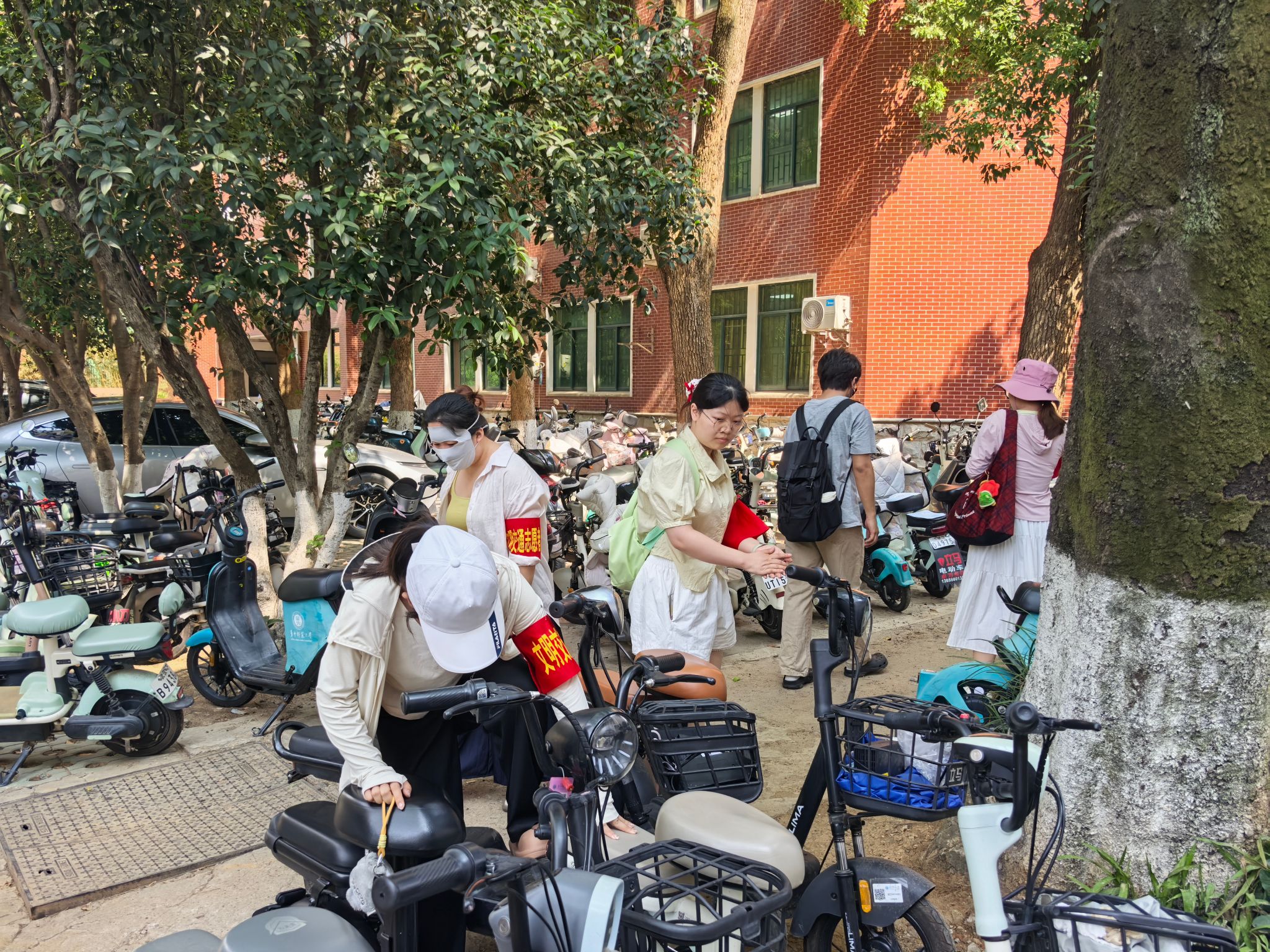 活动期间,身戴“红袖章”的志愿者们与保卫处负责老师共同携手,积极投身于校园交通文明执勤活动中。在桂子山校区学子食堂、8号教学楼、9号教学楼、国交园区、附小附幼周边以及南湖校区食堂、学生宿舍等点位,均能看到志愿们忙碌的身影,他们用心整理摆放“乱停乱放”电动自行车、细心查找“故意遮挡号牌”车辆、耐心引导行人规范通行,为营造安全有序的校园环境注入了蓬勃力量。