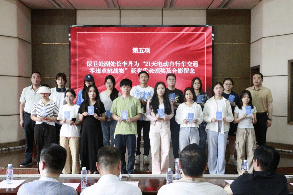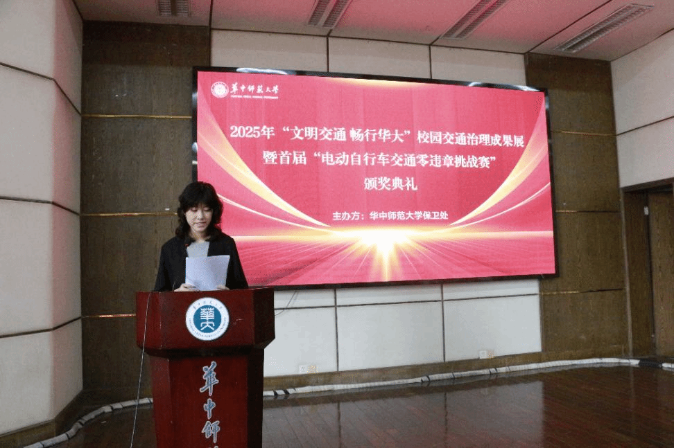 校园安全服务协会讯(通讯员 胡蝶)2025 年 6 月 12 日上午,华中师范大学保卫处在九号楼一楼报告厅举行首届“文明交通 畅行华大”电动自行车交通零违章挑战赛颁奖典礼。典礼由校园安全服务协会成员何雨阳主持,保卫处全体人员及获奖代表参会。