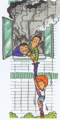 9、千万不要盲目跳楼,可利用疏散楼梯、阳台,落水管等逃生自救。也可用绳子可把床单、被套撕成条状成连成绳索,紧栓在窗框、暖气管、铁栏杆等固定物上,用毛巾、布条等保护手心,顺绳滑下,或下到未着火的楼层脱闻险境。