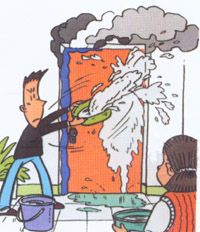 7、室外着火,门已发泼,千万不要开门,以防大火蹿入室内,要用浸湿的被褥,衣物等堵塞门窗缝,并泼水降温。