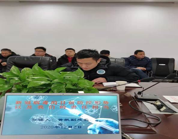 首先,由副部(处)长黄凯同志讲授学习新冠病毒的目前防控形势以及我们的责任担当,他指出,回顾整个疫情过程,我们是最猝不及防的,但我们也是幸运的,正是国难危急之时才能发挥我们党员的模范先锋作用!不论疫情如何变化,我们作为“桂子山卫士”的守护者,肩上所抗的职责使命、责任担当就应该是坚持把人民群众的生命安全和健康摆在第一位,扛起防控重大政治责任,动用一切力量把学校的安全保卫工作做好,把中央“外防输入、内防反弹”的工作要求落到实处!