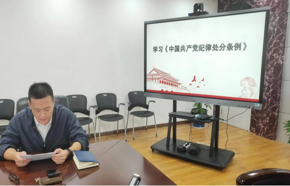 会议第三项内容,结合机关党委下发的《关于开展2022年党风廉政宣传教育月》的文件精神,由纪检委员黄凯同志带领全体党员学习了《中国共产党纪律处分条例》的节选内容。他说,我作为纪检委员从自身做起,对于党的纪律是绝对服从也绝对遵守。所以做一名合格且优秀的中国共产党员,我们更应该熟记、牢记党的纪律条例。大力弘扬清廉守正、担当实干之风。随后也按指示要求,全体党员观看了警示教育片,督促党员同志们敲响守法的警钟。
