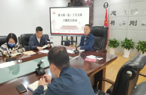 10月26日上午9时30分,在保卫部(处)三楼会议室召开了十月支部主题党日活动暨“党风廉政宣传教育月”专题组织会。按照上级党委要求进行文件学习精神,会议活动由宣传委员刘亚瑾同志主持,全体党员参会。