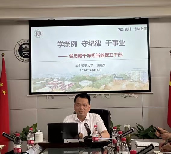 618下午保卫部(处)党支部党纪学习教育专题报告会保卫部(处)三楼会议室举行校党委副书记、纪委书记刘继文以《学条例 守纪律 干事业——做忠诚干净担当的保卫干部》为题作专题报告。保卫部(处)部(处)长王东爽主持会议并讲话。